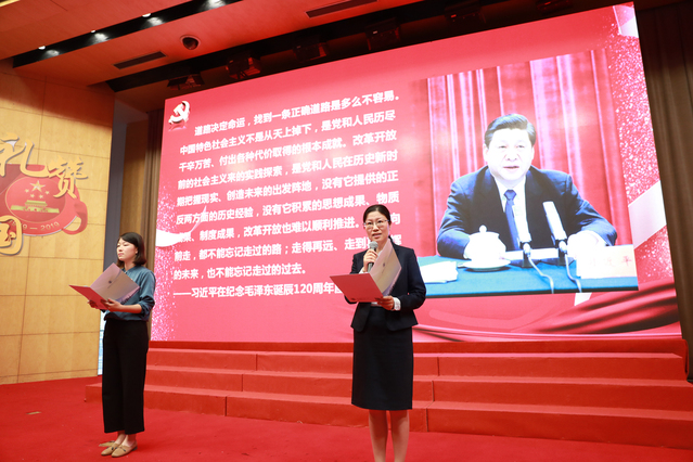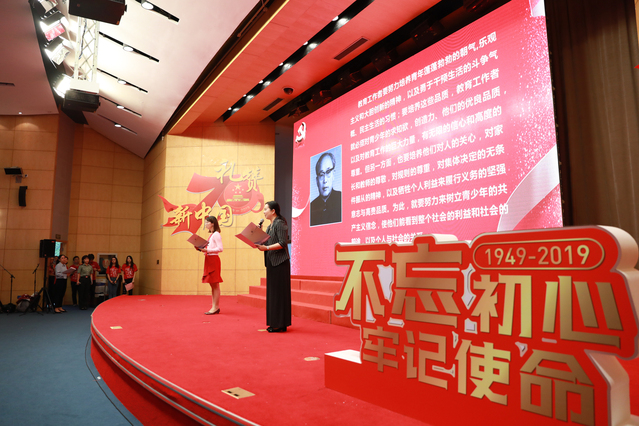 活动分“信仰与初心”“梦想与希望”“开拓与奋斗”“使命与担当”四个篇章。9位教工党支部书记分组于每一篇章起始登台领读“时代篇章”,以《习近平在纪念毛泽东诞辰120周年座谈会上讲话》开篇,深情朗诵了毛泽东、邓小平、习近平关于革命道路、理想道路的重要论述,汲取不忘初心、脚踏实地、砥砺奋进的坚毅与豪迈。他们还诵读了孟宪承、常溪萍、施平、刘佛年等老一辈校领导和校党委书记童世骏对教育报国初心和大学精神的阐释,感受华东师大作为新中国第一所社会主义师范大学的使命传承,启发为学为师、立德树人、服务社会的责任担当。