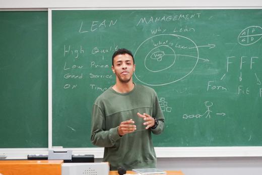 Dan ARIAV同学则以“Lean management”为题,讲述精益化管理的实施必要性及具体操作模式,并称精益化管理是满足客户的质量高、价格低、服务好等需求的必然产物。沙龙活动的最后由2019“马烈杯”华东师大MBA创业大赛一等奖团队倪浩然做项目路演,以“慧说科技——国际汉语词汇学习专家”为题,讲述当前的汉语学习热潮和强烈市场需求,以及其依托华东师大资源研发的专门针对汉语词汇学习的在线工具软件一口汉语(Mandarin Bites)的产品具体情况。