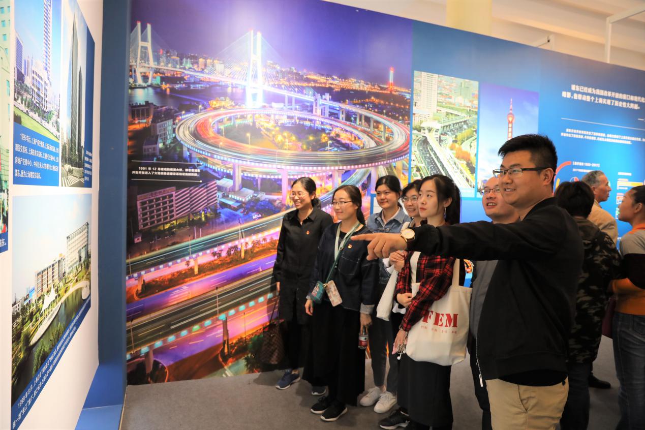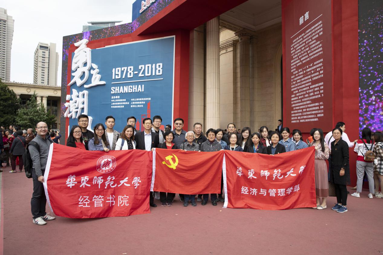 10月18日下午,经济与管理学部行政教工党支部、经济与管理学部关工委分会和经管书院教工党支部联合开展组织生活,在学部党委副书记高向东的带领下集体参观了“勇立潮头——上海市庆祝改革开放40周年”主题展览。