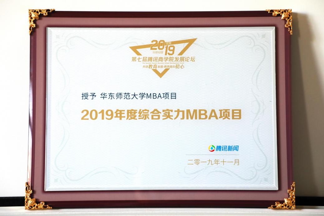 2019年11月12日,由腾讯新闻主办的2019第七届腾讯商学院发展论坛于11月12日在北京成功举办,国内众多知名商院院长、主任,权威机构负责人以及资深财经媒体人齐聚一堂,以“共谋教育发展,再铸商科初心”为主题,共同探讨新形势下商科教育的初心与发展。论坛上评选出了“2019年度品牌价值商学院”、“2019年度综合实力MBA项目”、“2019年度优质特色MBA项目”等奖项,华东师范大学MBA项目荣获腾讯“2019年度综合实力MBA项目”,复旦大学MBA项目、上海交通大学安泰经济与管理学院MBA项目、浙江大学MBA项目等同获此奖。