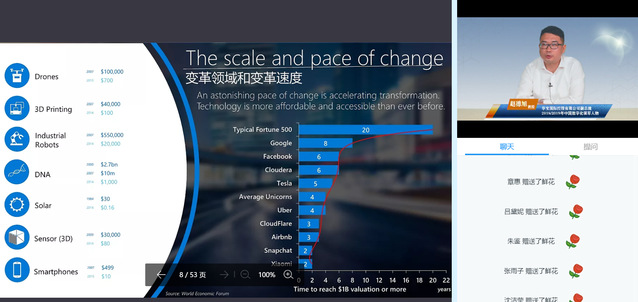 “硕秋”主题周的第三场云上讲座,是由华宝国际控股有限公司副总裁,2012年度中国最具价值CIO,2018年度、2019年度中国数字化转型领军人物,江苏省产业教授赵德旭先生带来的《企业数字化转型困境及其对策》。他逐一阐述了数字化时代的要点、中国的数字化时代的形成和现状、企业数字化转型的刚需问题、数字化转型的误区和成功的案例、企业数字化建设的要素等。最后,赵德旭先生总结到,数字化时代,部分企业已从工业化思维转向了数字化思维,在业务层面,需要进行定位和执行,认清自己的实力,不去盲目夸大自动驾驶、大数据和人工智能等技术,同时也脚踏实地关注投入和产出的价值比。数字化转型是企业文化、制度、机制的综合转变。
