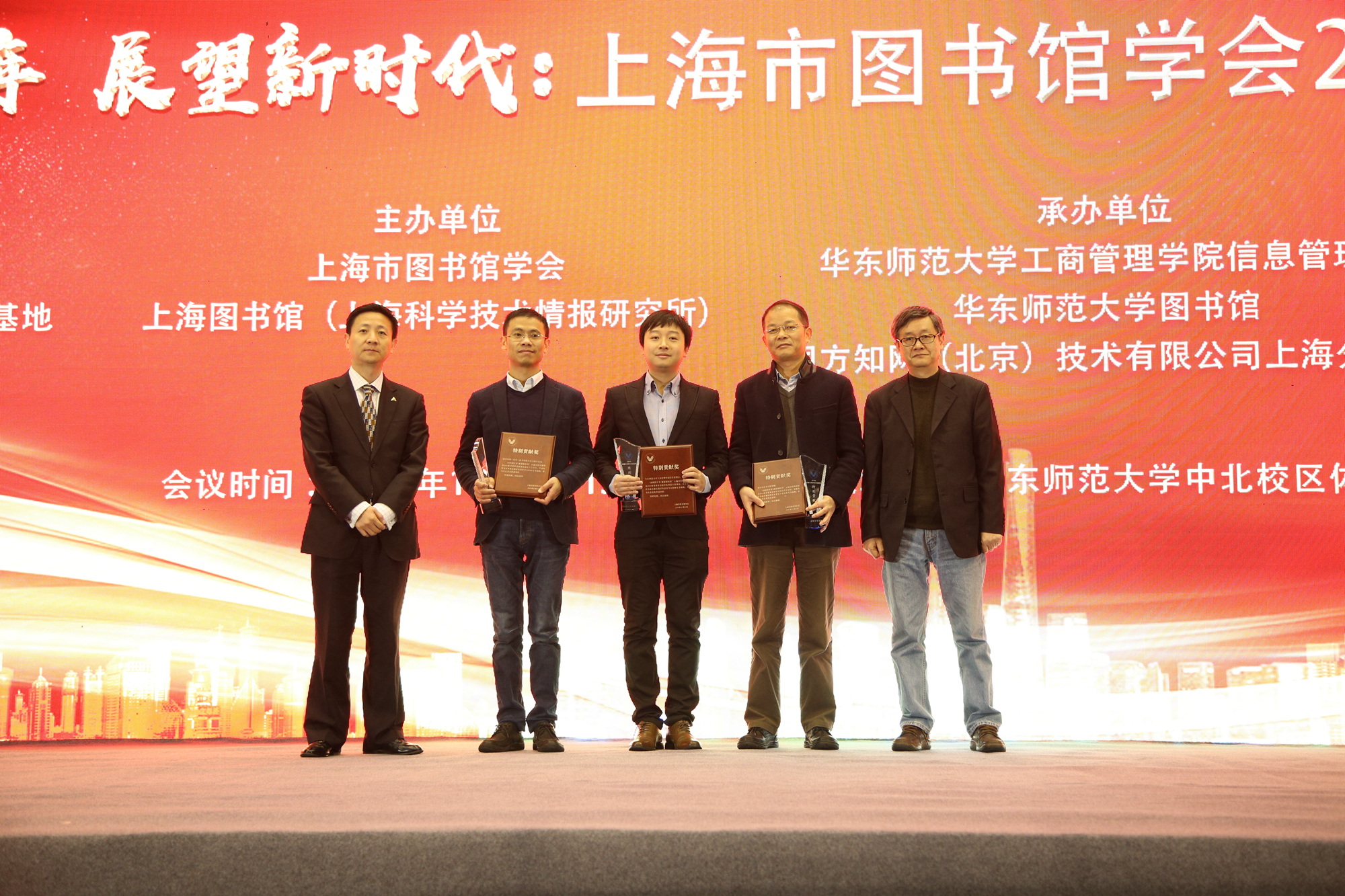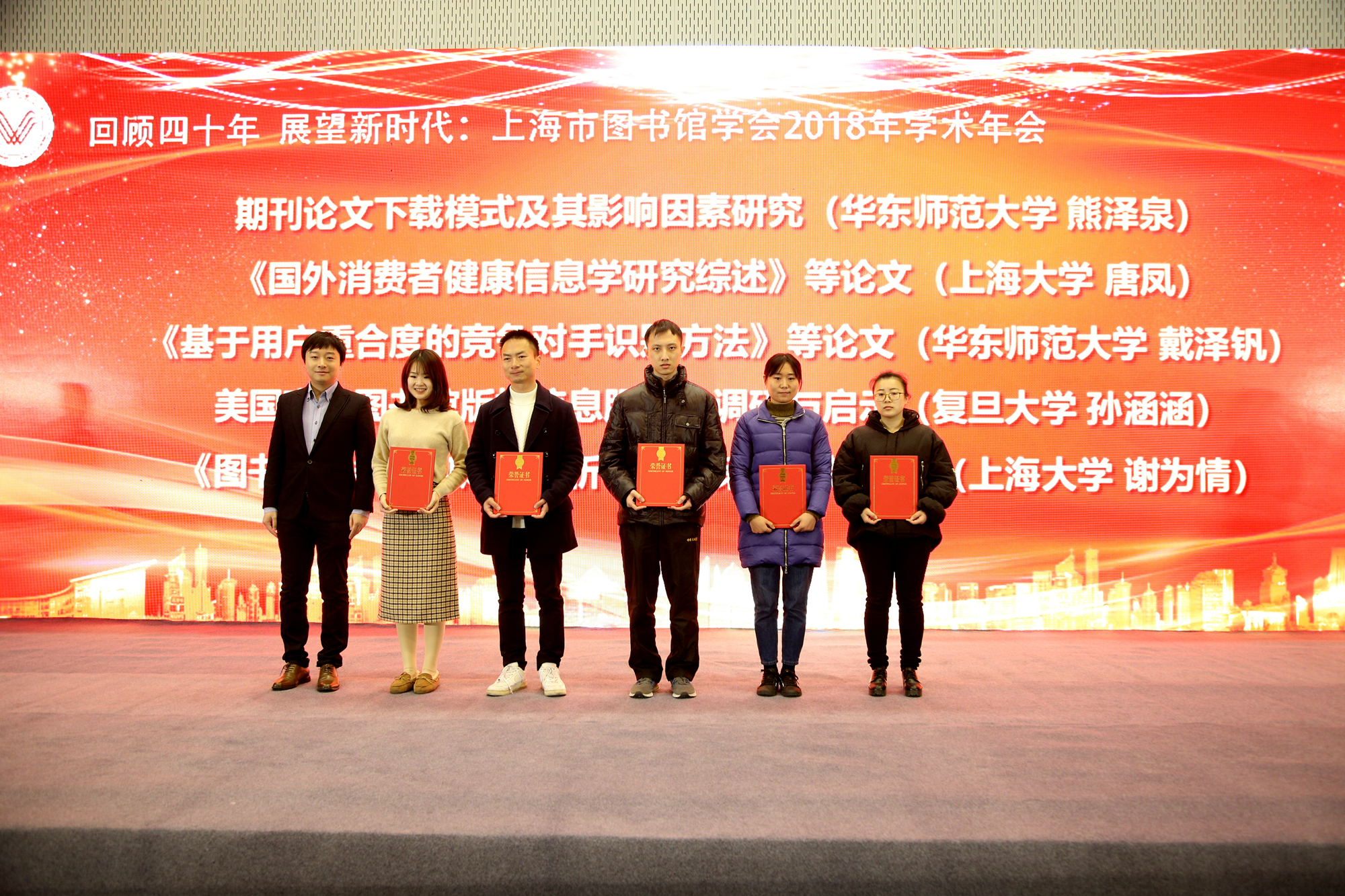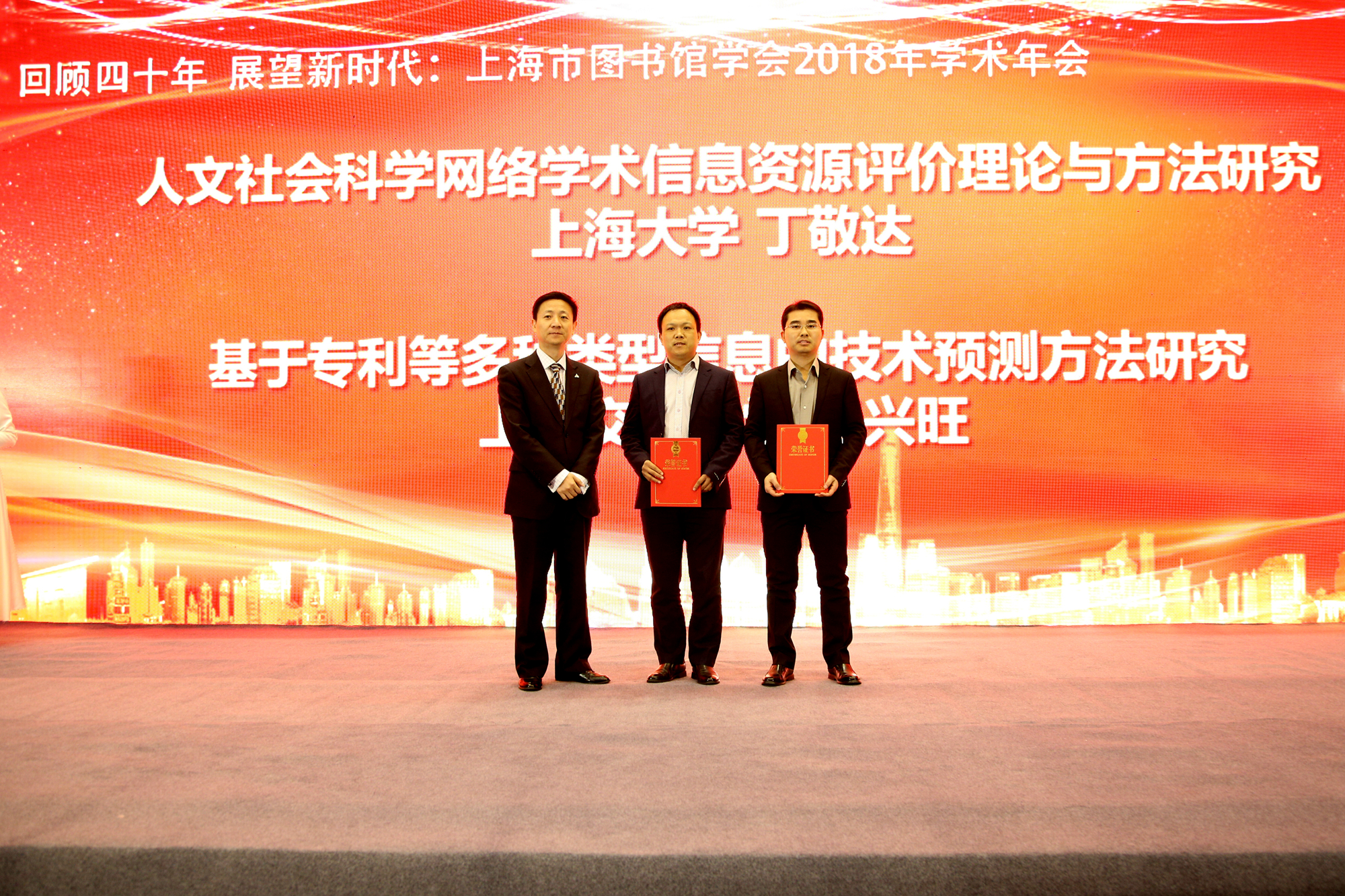 开幕式上,于建荣宣读了上海市图书馆学会关于表彰2018年度“优秀学术活动组织特别贡献奖”和“优秀学术活动组织奖”的决定。我校工商管理学院信息管理系、我校图书馆,以及同方知网(北京)技术有限公司上海分公司荣获2018年度“优秀学术活动组织特别贡献奖”,会上还颁发了“上海市图书馆学会2018年度优秀学术活动组织奖”“上海市信息资源管理青年杰出成果奖”“上海市信息资源管理青年优秀成果奖”,以及“上海市信息资源管理优秀研究生成果奖”,并展示了上海市图书馆学及相关领域年度代表性成果。