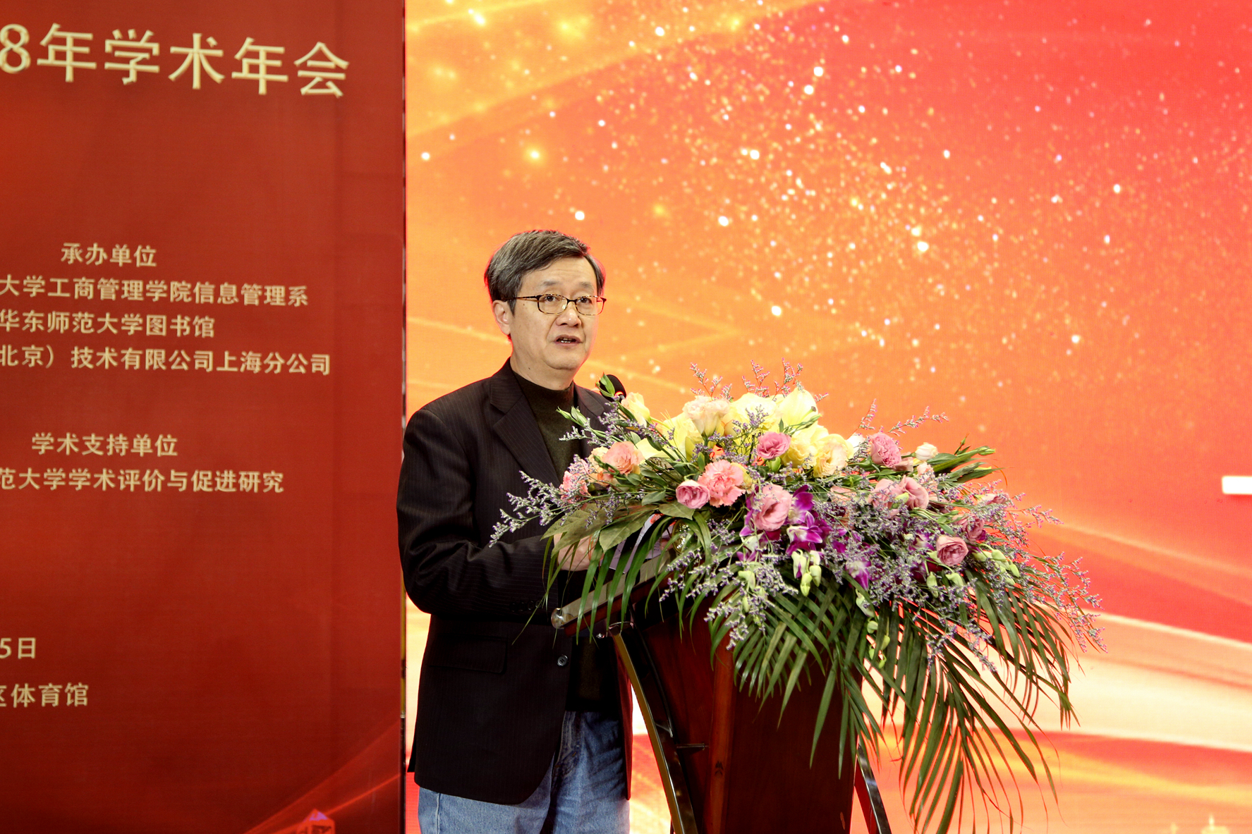 孙真荣致开幕词。他梳理了华东师大在图书情报领域的发展历程,呈现了学校从20世纪80年代开始的图情教育的雏形与发展,肯定了学校信息管理系在图情领域人才培养和知识服务方面所作的贡献。