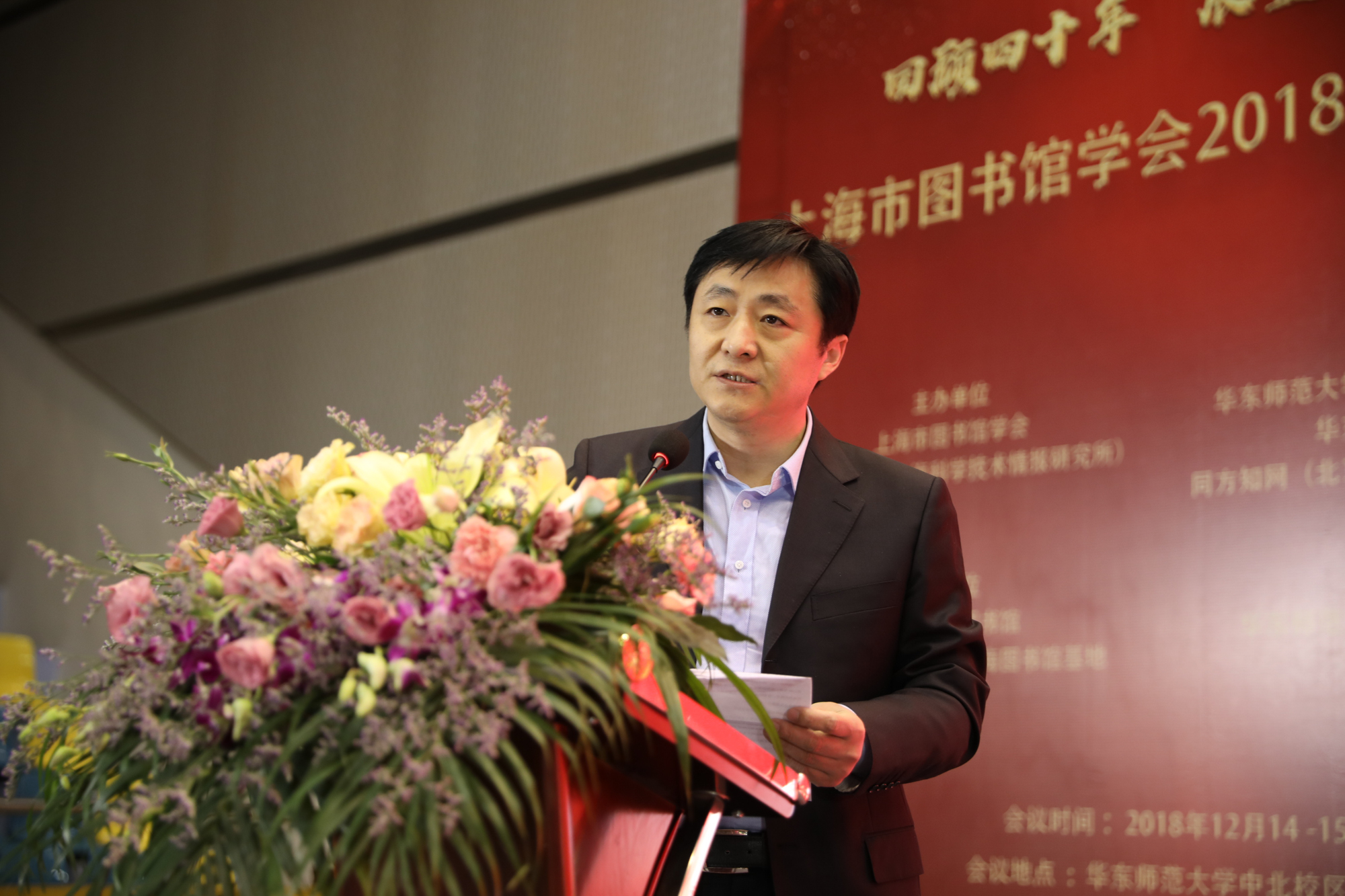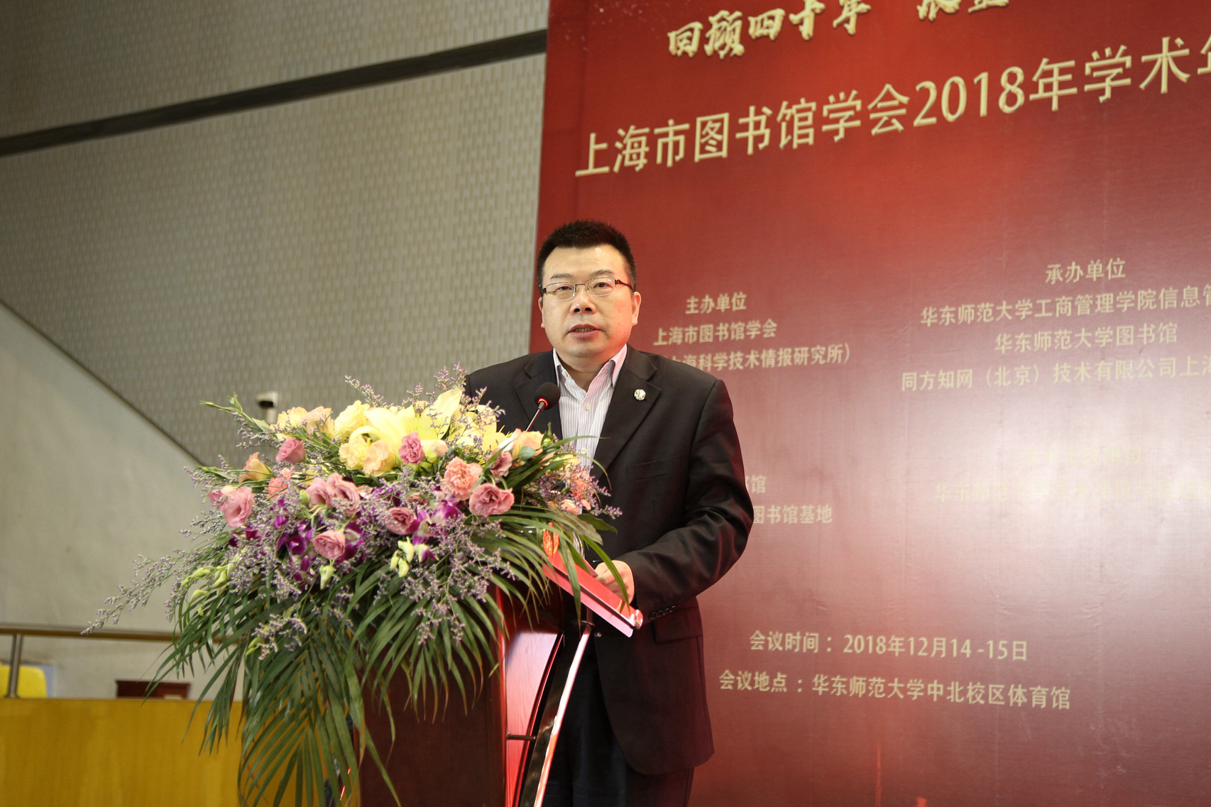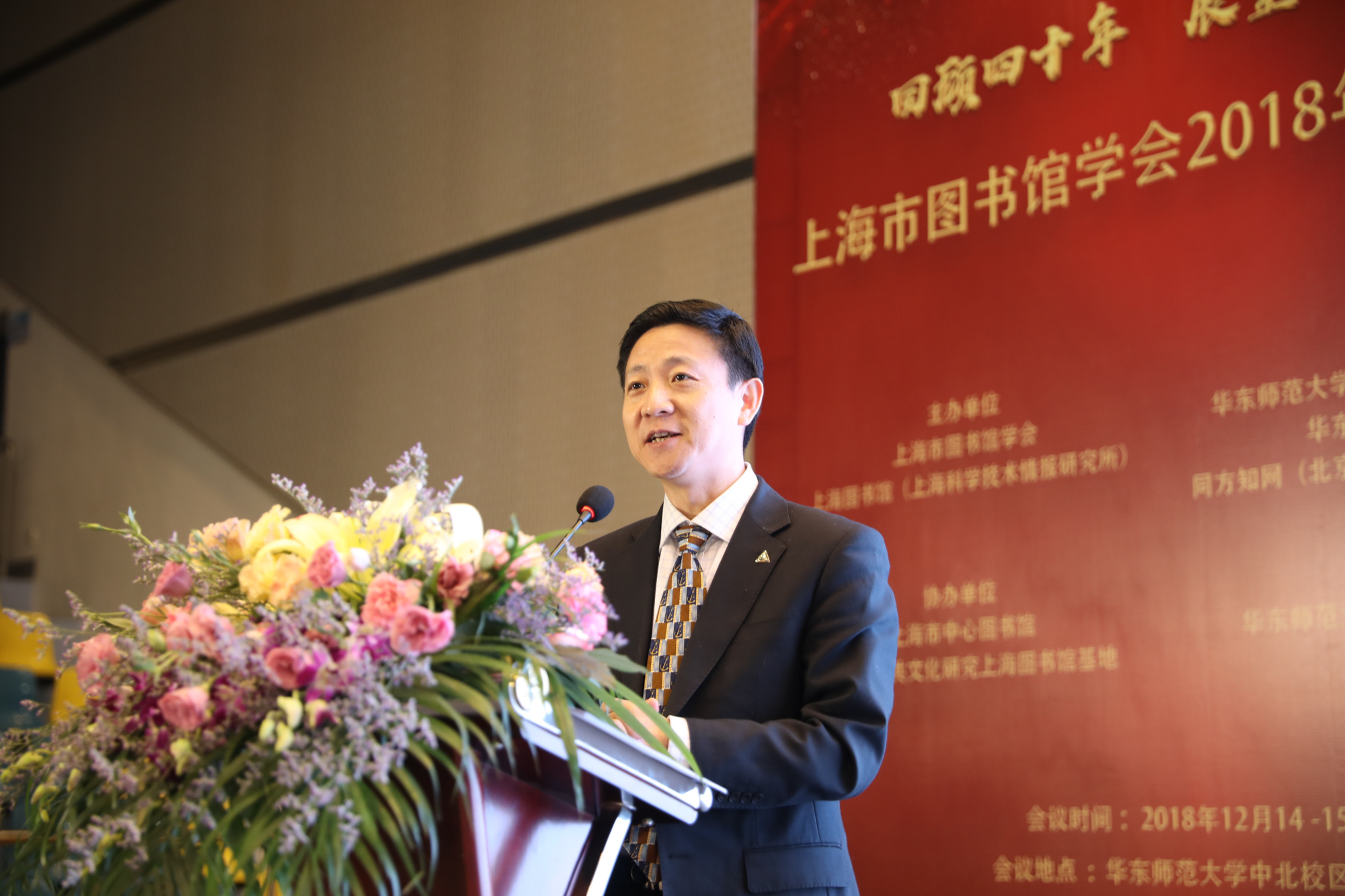 上海市图书馆学会理事长、上海图书馆(上海科技情报研究所)副馆所长周德明代表主办方致辞