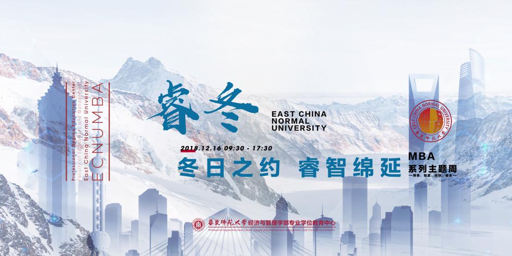 华东师范大学MBA十周年之际,经管学部专业学位教育中心经过精心筹备,重磅推出MBA系列主题周——“博春”、“智夏”、“硕秋”、“睿冬”,四季轮转,新知长获。继四月“博春”MBA主题周、六月“智夏”MBA主题周、十月“硕秋”MBA主题周圆满落幕后,十二月“睿冬”MBA主题周再度奉上博智盛宴,为走过的十年献礼,为未来的十年启航。