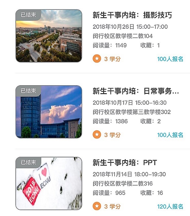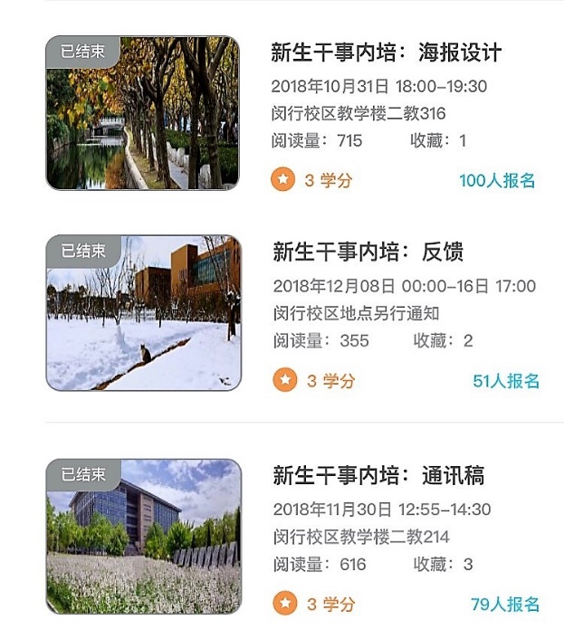 系列培训采用学分制,鼓励学生干事在注重专业学习的同时,也丰富自己的 “第二课堂”成绩单。不少干事表示,学分制的实行提升了大家的课堂参与度,在“第二课堂”也能充分感受到学习氛围。也有干事表示,学分制培训的存在符合了他们对大学生活的想象,在感到轻松愉悦的同时又能接触到学生工作干货,不管是文案写作还是摄影技巧的培训,都提升了大家的工作技能。