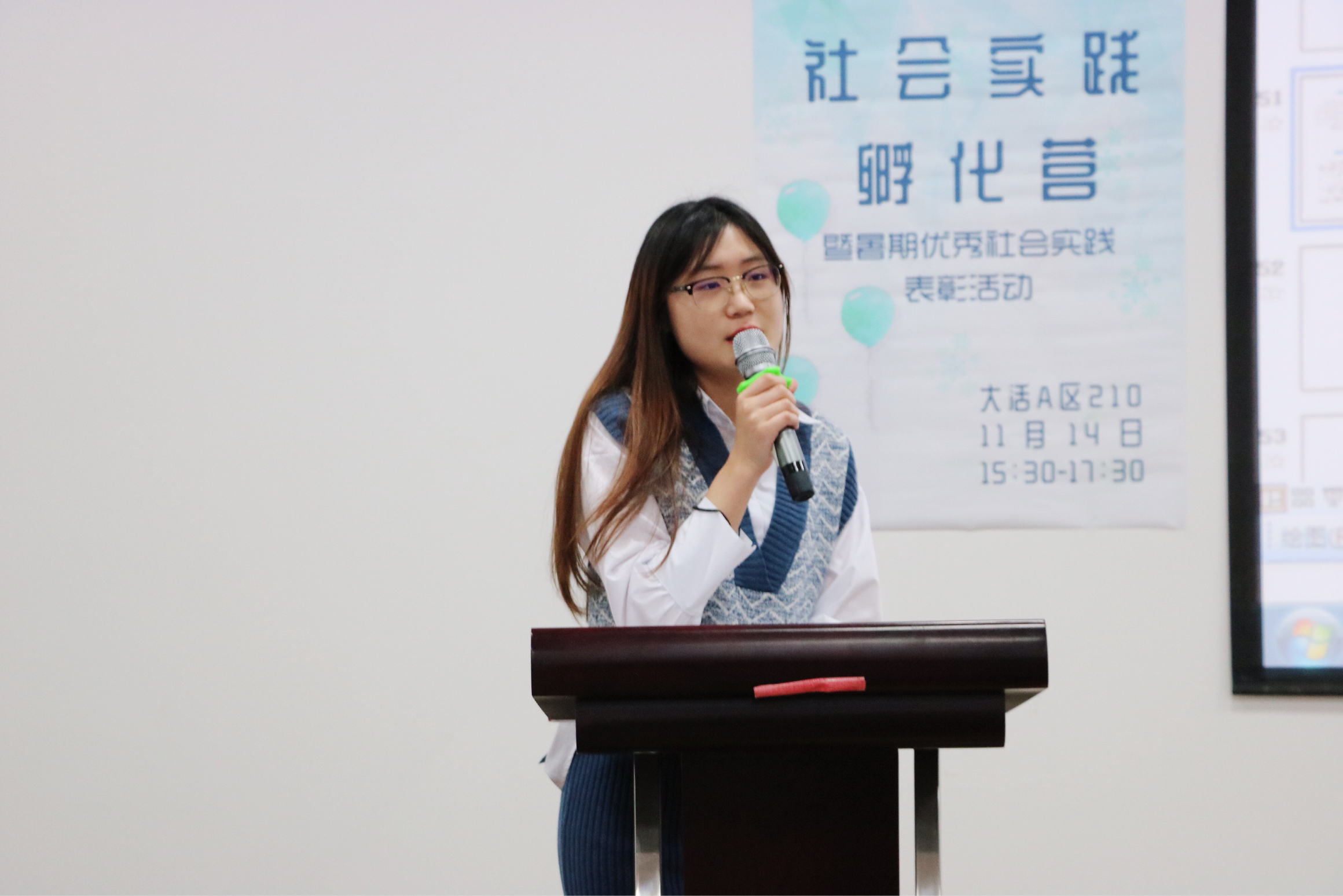 活动对2018暑期经管书院优秀社会实践项目进行了表彰。随后,四位优秀暑期社会实践项目负责人先后分享了参与社会实践的经验心得。书院特等奖项目《红土地上的守望——赴滇关爱留守儿童“快乐小屋”志愿服务活动》负责人杜书豪详细展示了小组分工及前期准备,为在场师生们介绍了项目的价值及意义。上海市“知行杯”三等奖、书院一等奖项目《破解居民参与社区治理困境,成就共建共治共享新格局》负责人郭秋渔从实践缘由、目的和方案设计三个方面进行介绍,并介绍了项目实地走访、问卷调查、深入访谈的开展情况。书院一等奖项目《“互联网+”时代下我国高校智慧体育场馆建设》负责人初晓从实践主题选择的背景和团队成员的多样性组合分工入手,分享了其实践过程中运用的分析方法和以及多学科融合所迸发的实践结果。书院二等奖项目《华师饭范——智慧食堂线上平台》项目负责人曹媛媛从校园生活出发,捕捉到社会实践主题方向,从项目选题方面进行了经验分享。