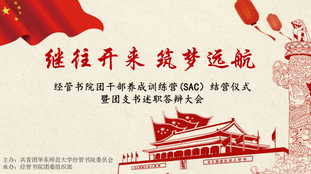 12月19日,由经管书院团委组织部主办的团干部养成训练营结营仪式暨团支书述职答辩会在闵行校区大学生活动中心A区210室成功举办,本次活动以“继往开来·筑梦远航”为主题,旨在对本学期的团干部养成训练营进行总结,同时进行本学期团支书工作答辩。经管书院团委书记杨亚星,团委副书记陈梦瑶、刘函涵,团委书记助理陈雨晴、章程、程临峰,16级优秀团支书代表米垚,以及约20名团支书共同出席本次结营仪式。