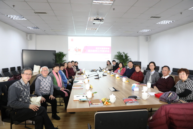 2019年1月17日上午,经济与管理学部举办退休教师工作座谈会。学部关工委主任、书院党委书记兼学部副书记高向东,学部党委副书记张艳虹,学部办公室主任黄曦,学部关工委副主任、离退休党支部书记、特邀党建组织员徐丽华,学部关工委副主任、特邀党建组织员陈爱平,学部关工委副主任周纪芗,学部老教授协会会长叶守礼,副会长庄志民,离退休党支部委员、关工委委员、老教协委员金仁芳、华俊、孙厚琴、薛跃、周洁卿、卞正庆、陈承明、韩天雄,学部关工委副秘书长、书院团委书记杨亚星等共同参加了本次座谈交流。会议由黄曦主持。