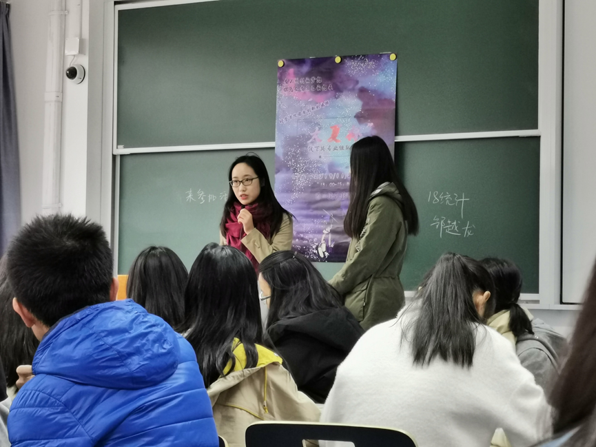 2017级人力资源管理专业本科生郑毛毛从研究的背景、内容、过程、结果等方面为同学介绍经验,继而又分享了科创的时间进度及其个人的体会与感受。她特别强调了备赛的“同心”、“进度”、“沟通”、“坚持”这四个基本要素的重要性。