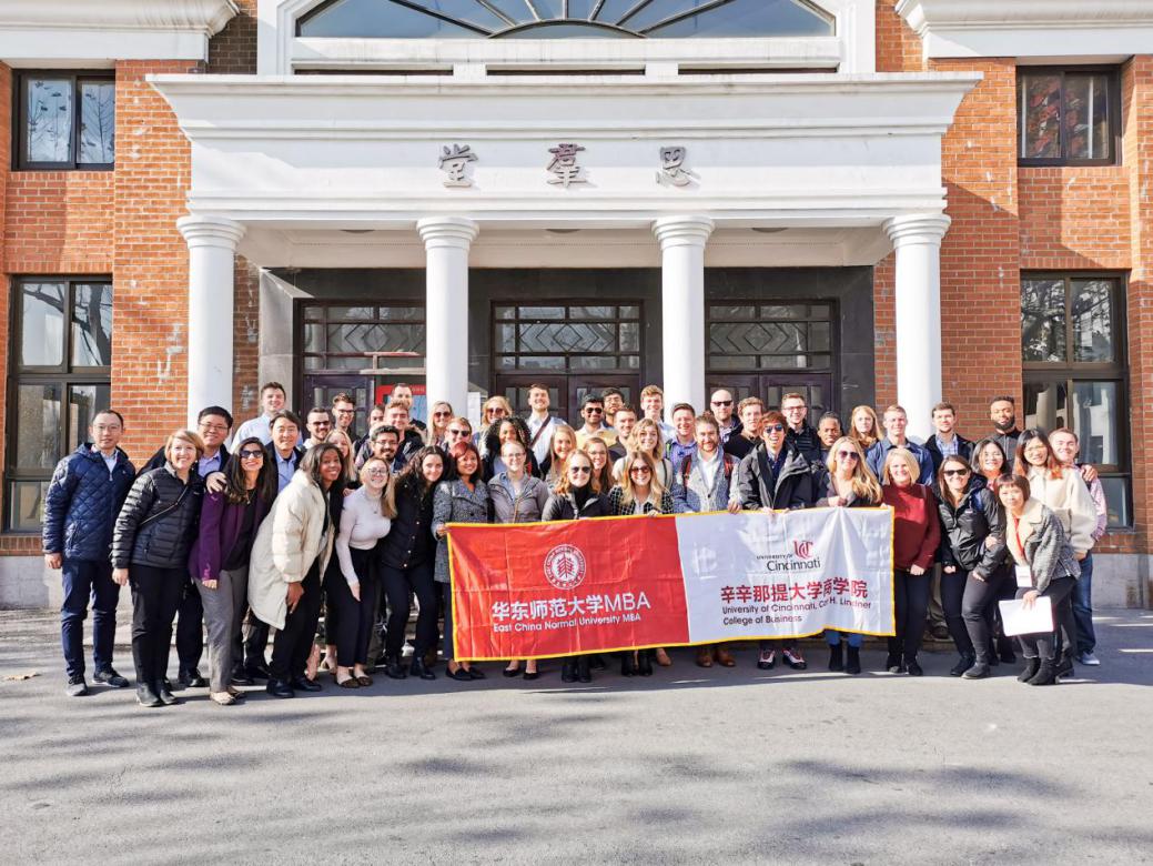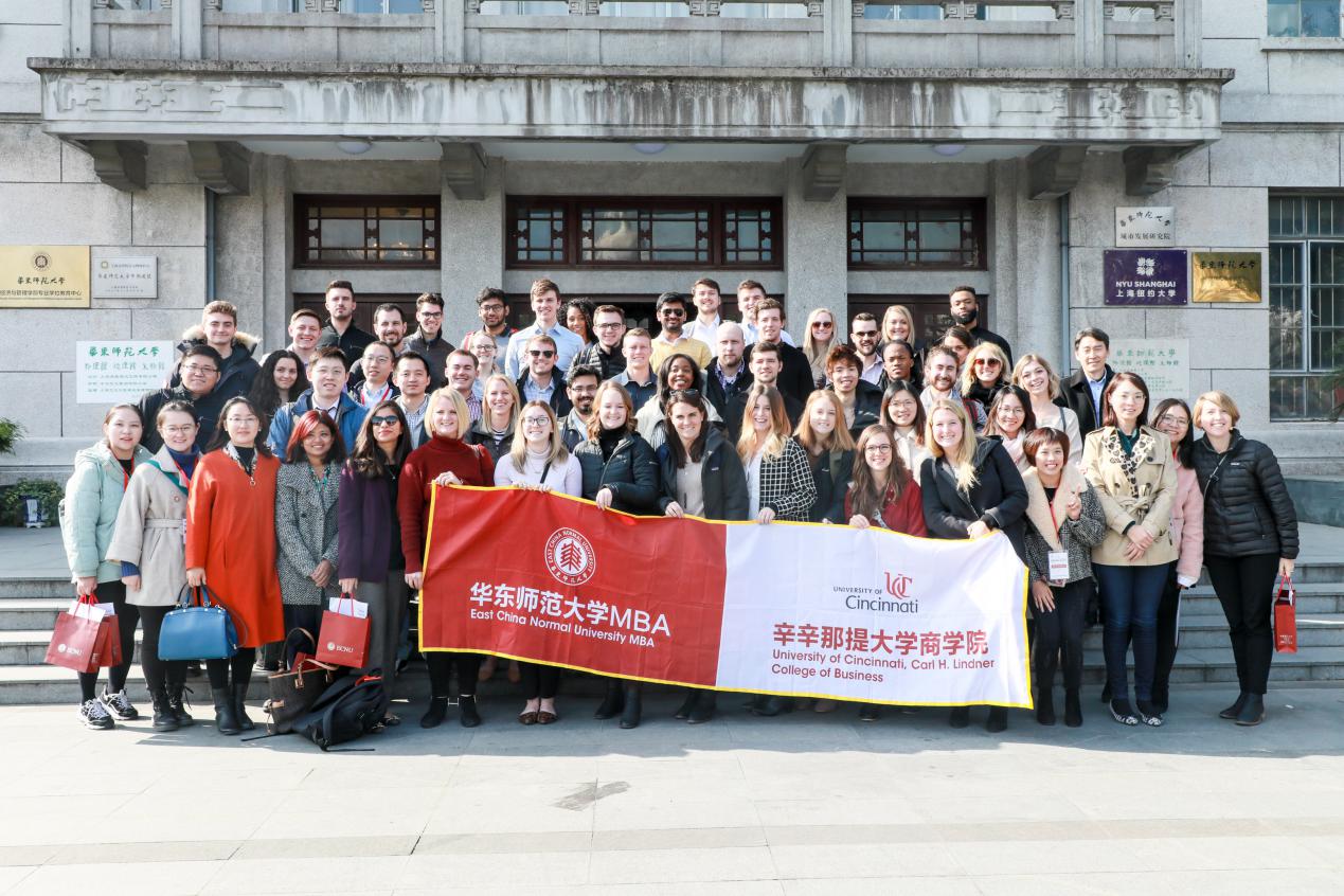 2019年12月12日,华东师范大学经济与管理学部专业学位教育中心热情接待了来自美国辛辛那提大学CarlH. Lindner商学院的Dong Gil Ko副教授,MBA项目主任Patrice Alexandria Morris老师,国际项目副主任Gwen Christine Roemer老师和Yinghao Zhang助理教授以及43名MBA学生一行。专业学位教育中心自2017年起与美国辛辛那提大学Carl H. Lindner商学院建立了良好的关系,共同搭建了两校MBA学生深度交流的平台并在每年进行定期互访。此次为接待美国辛辛那提访学团,中心精心安排了一节剖析中国市场经济发展之路的课程,同时提供了加深中美文化互动的午餐交流会。专业学位教育中心副主任欧丽慧博士、国际交流部周旭老师以及2019年赴辛辛那提访学团学生参与了此次接待。