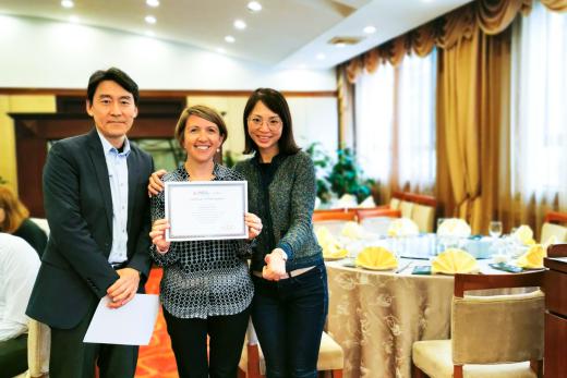 访学闭幕式在轻松愉悦的氛围中展开,专业学位教育中心副主任欧丽慧博士和辛辛那提Dong Gil Ko副教授为所有参加此次访学的美国学生授予学习证书。餐后,原华东师范大学赴辛辛那提访学的师生和此次来访的美国辛辛那提师生合影留念,分享了学习感悟,加深了跨洋友情,本次接待工作在温情与期待中圆满落幕。远隔重洋,情谊长存!