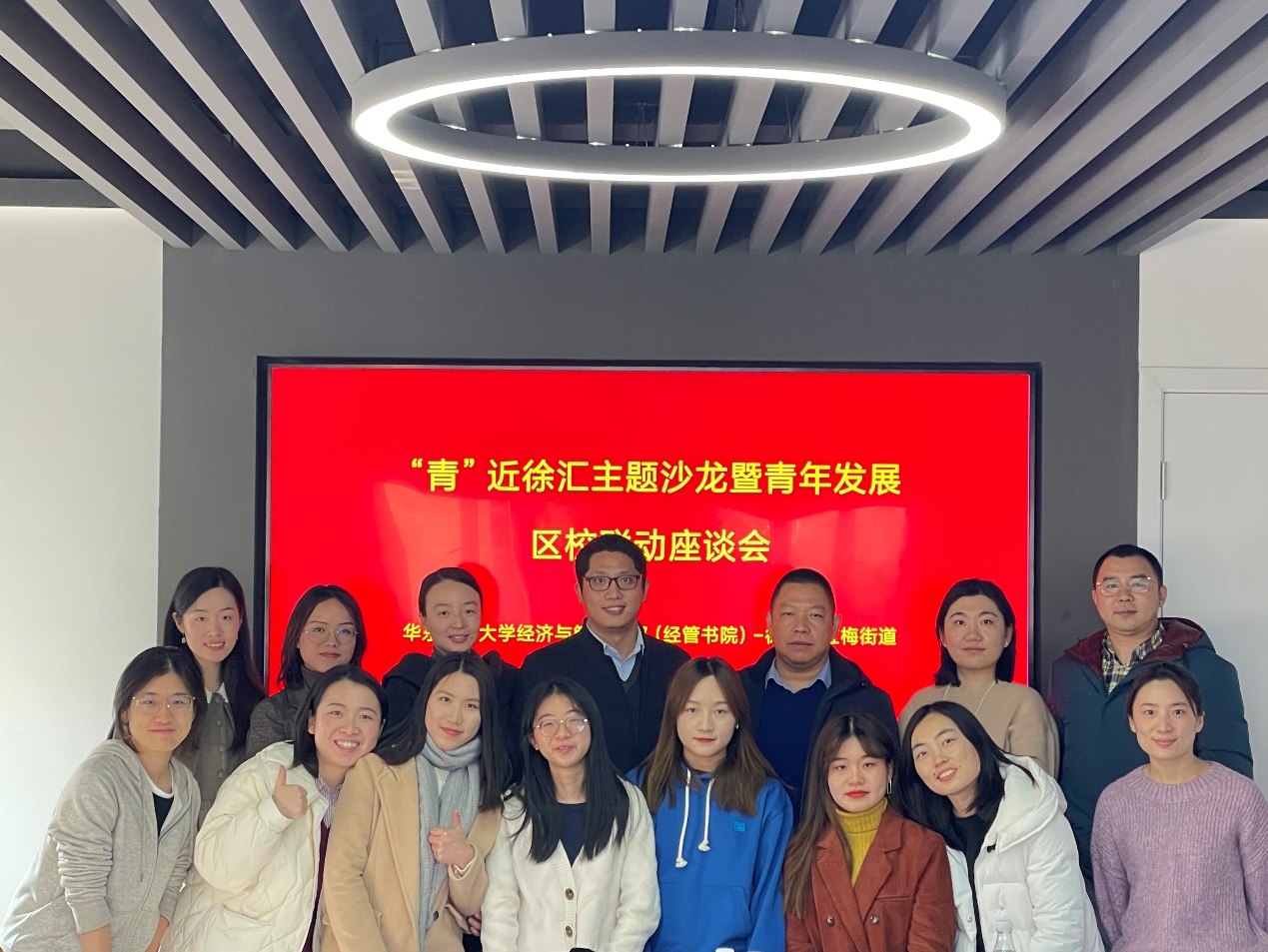 为进一步细化合作内容与合作方案,2021年12月29日上午,“‘青’近徐汇主题沙龙暨青年发展区校联动座谈会”在徐汇区虹梅街道举行。徐汇区虹梅街道人大工委副主任夏飞,徐汇团区委副书记黄文彬,徐汇团区委基层工作部储备人才康贝尔,党建办公室主任曹萍,团工委副书记毛玲欣,党群中心副主任王奕雯,校团委副书记张静,经济与管理学部(经管书院)团委书记杨亚星,经济与管理学部(经管书院)副书记栾赛娜,经济与管理学部研究生辅导员林悦及学生代表出席活动。