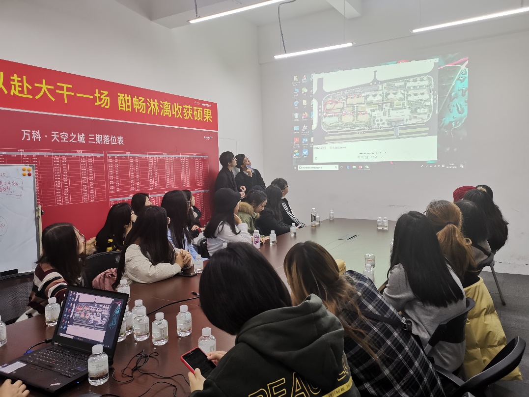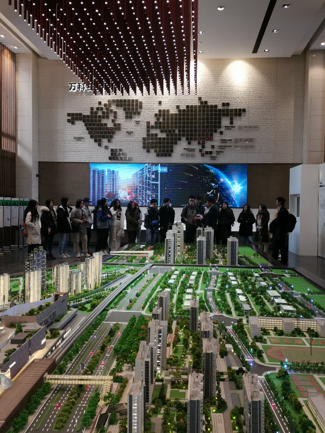 首先由售楼处吕经理向学生讲解万科在全球的各种项目、本项目区位与项目具体规划、项目一期、二期、三期的销售情况以及项目四期的远景规划。之后,带领学生实地参观了项目二种主要户型样板房的展示,之后到会议室,由项目总监朱博文为学生讲解渠道及营销策划等相关知识。胡金星老师通过提问,与学生及朱总监进行互动。通过一个上午的现场教学,学生们了解到,尽管该项目位于高架及轻轨边,面临着可能的噪音和灰尘等先天不利因素,通过项目规划与营销策划等,做到了2019年上海市销售面积和套数榜首,学生们对营销渠道有了更深入的理解,上午教学顺利完成。