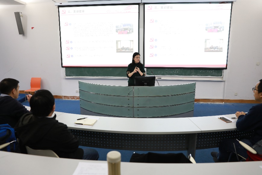 周迎春对支部建设、人事工作、人才培养进行了汇报,并将党支部获评的 “全国党建工作样板支部” 与各位老师一起分享。她指出,这个荣誉的获得既是对学院和教工党支部工作的肯定,也是激励,我们要以此次获批“全国党建工作样板支部”为契机和新起点,扎实推进支部建设,发挥样板示范作用,也希望各位老师以此为标杆,继续努力,把学院和党支部建设工作推上新的高度。