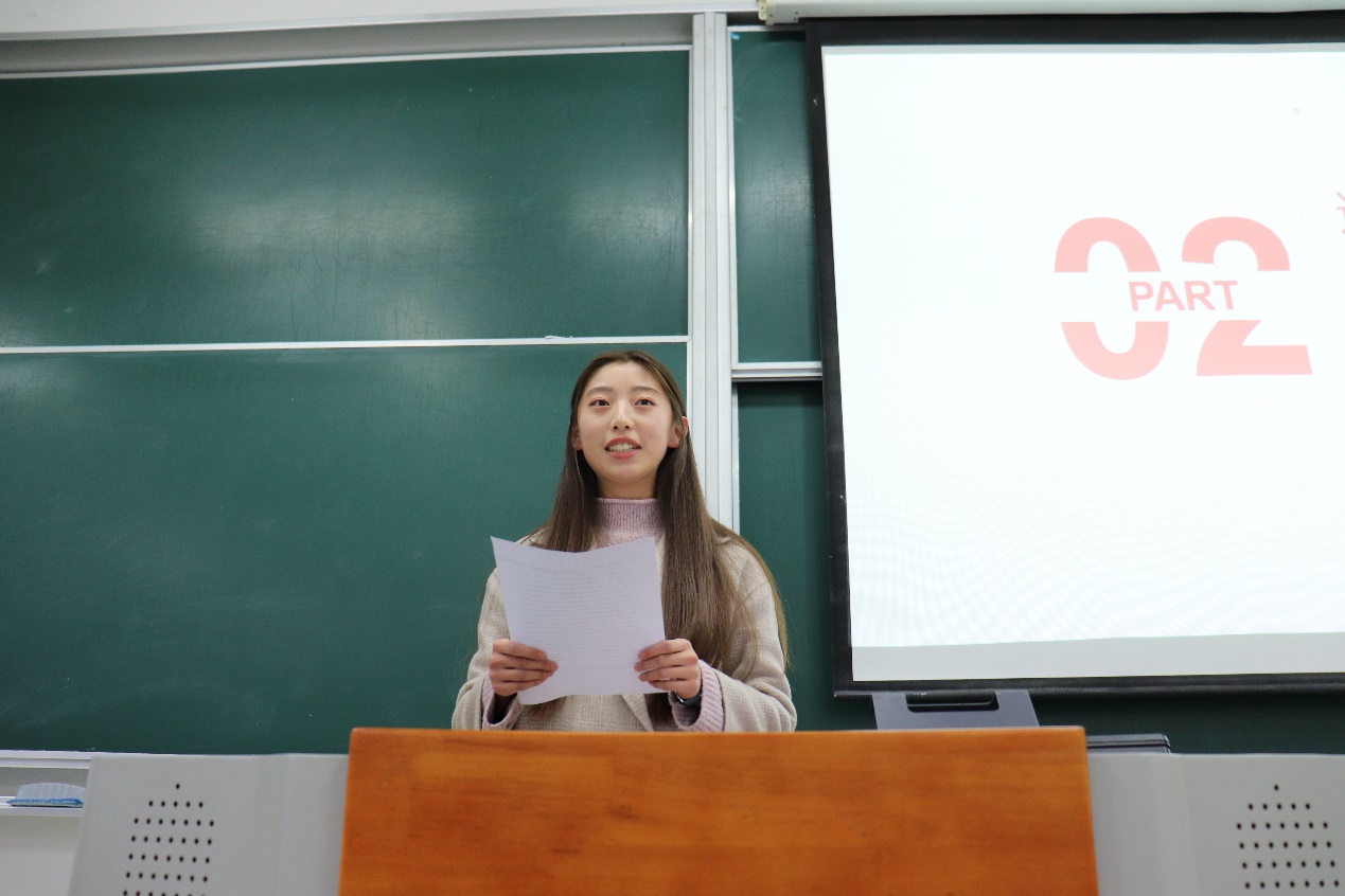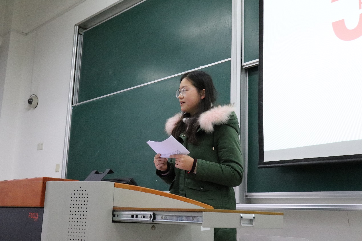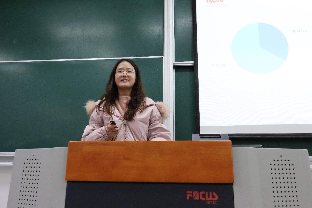 随后,同学们又利用专业特长将2018级统计大类班级同学的整体情况以可视化数据的形式向在座的师生进行介绍,其中包含同学们的基本情况、竞赛获奖、学生工作、社会实践、志愿服务、未来方向等同学们最感兴趣的方面。与此同时,学生们又展现了他们“跑数据”之外的“情怀”,由于如意同学代表做了“逐梦时光——我们的2018-2019”的主题发言,用诗一般的语言从多个方面回顾了过去一年中同学们五彩斑斓的大学生活——学在华师大、爱在华师大、动在华师大,让我们看到了这群“理科生”的文学素养。最后,她也表达了在学业上、科研上、生活上曾感到的种种困惑与挫败以及对于曾无私帮助过她的老师们的诚挚谢意,以及对接下来的“统计”人生的憧憬与期待。