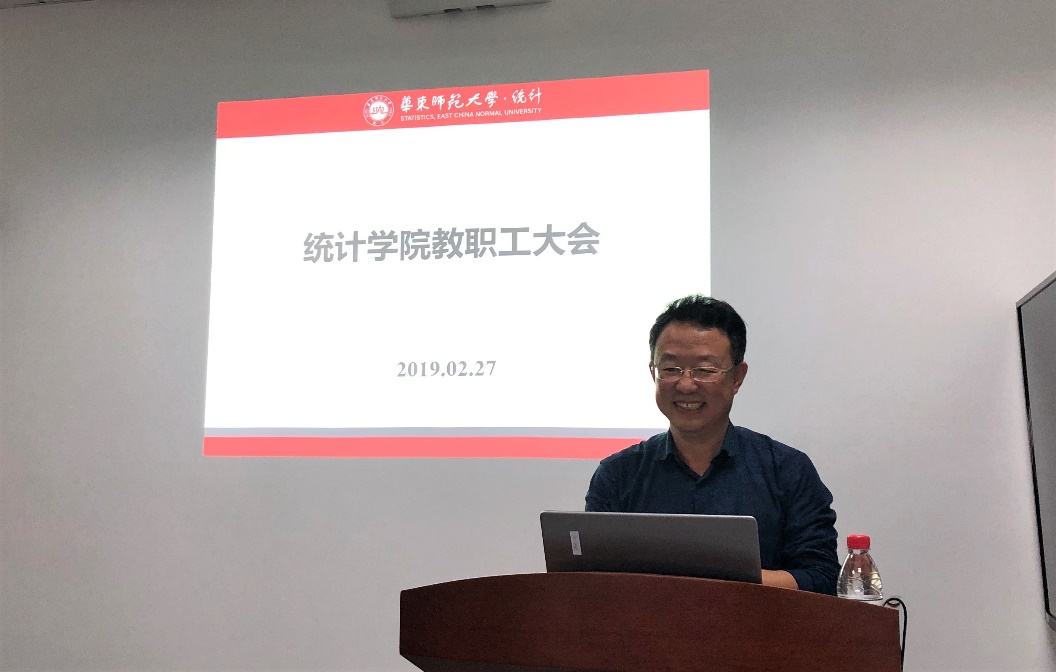 会上,统计学院院长张日权教授对本学期学院工作进行了整体部署,包括教学,科研,财务和思想等方面。他指出,统计学科是教育部“双一流”建设学科、教育部第四轮学科评估A学科、上海市高峰学科、近期又成立了统计与数据科学前沿理论及应用教育部重点实验室(筹)(以下称教育部重点实验室)。统计学科现在有很好的平台,但也面临着巨大的挑战。希望全院师生更好地发挥华师大统计学精神,紧密团结起来共同努力,将压力变动力,在教学、科研等各个方面再上一个新的台阶。学院将不遗余力地支持各位老师共同奋进。学院现设有教学委员会、招生委员会、招聘工作小组、科研与学科建设工作小组4个小组,希望各小组发挥好自己的职能,为大家服务。