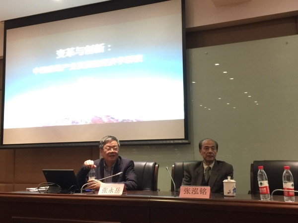 首先,胡金星副教授向大家介绍了两位报告会嘉宾。主讲人张永岳,是华东师范大学终身教授,也是东方房地产学院和房地产系的创始人,兼任上海市人民政府决策咨询研究基地首席专家、国家住建部决策咨询专家、中国房地产估价师与房地产经纪人学会副会长、上海市经济学会副会长、上海市房产经济学会副会长等。点评人张泓铭,是上海社会科学院教授,兼任上海市人民政府参事、国家建设部住房政策专家委员会专家、上海市政协常委、上海市房产经济学会副会长、上海市房地产行业协会副会长等。介绍完后,对在百忙之中来参加报告会的全体老师、学生、校友等表示衷心的感谢,并请在场所有人思考一个问题即房地产业的昨天、今天和明天是怎样的一种场景。随后,张永岳教授正式开始作“变革与创新:中国房地产业发展的经济学解读”学术报告。