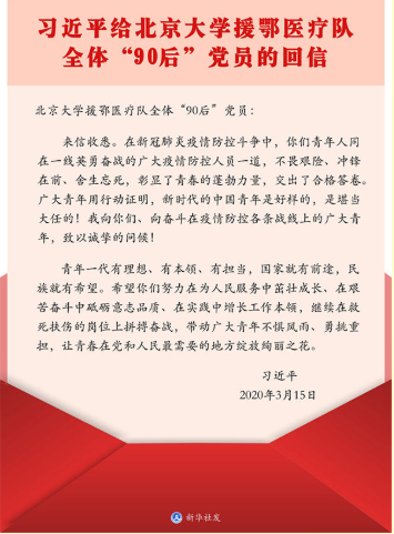 两支部党员共同学习习近平给北京大学援鄂医疗队全体“90后”党员的回信