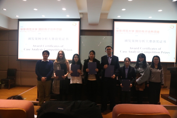 最终,根据期中答辩、微信投票和期末答辩等环节的积分加总,李昱所带领的“特斯拉进军中国市场”项目组获得国际商才培养项目案例分析大赛一等奖,叶佳蕾和曾傲唯分别带领的“传统书店转型——以季风书园为例”项目组和“无印良品的品牌营销战略”项目组获得国际商才培养项目案例分析大赛二等奖,其余五组获得国际商才培养项目案例分析大赛三等奖。