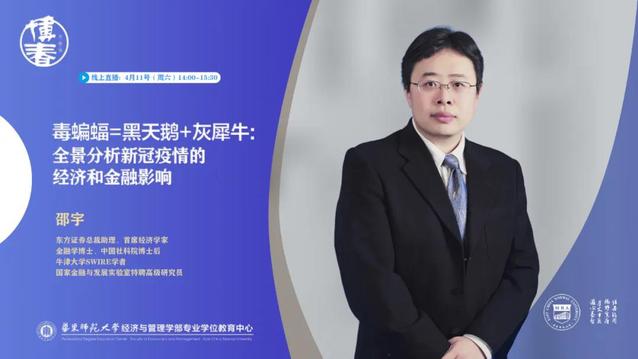 Dr. Shao Yu gave a lecture named “Poison bat = black swan + grey rhino: a panoramic analysis of the economic and financial impacts of the novel coronavirus pandemic, in which he presented the severe impacts the novel coronavirus pandemic is producing on the national economy and financial market. He held that due to the assault of the pandemic as a combination of the “Black Swan” and “Grey Rhino”, a global economic recession is inevitable.