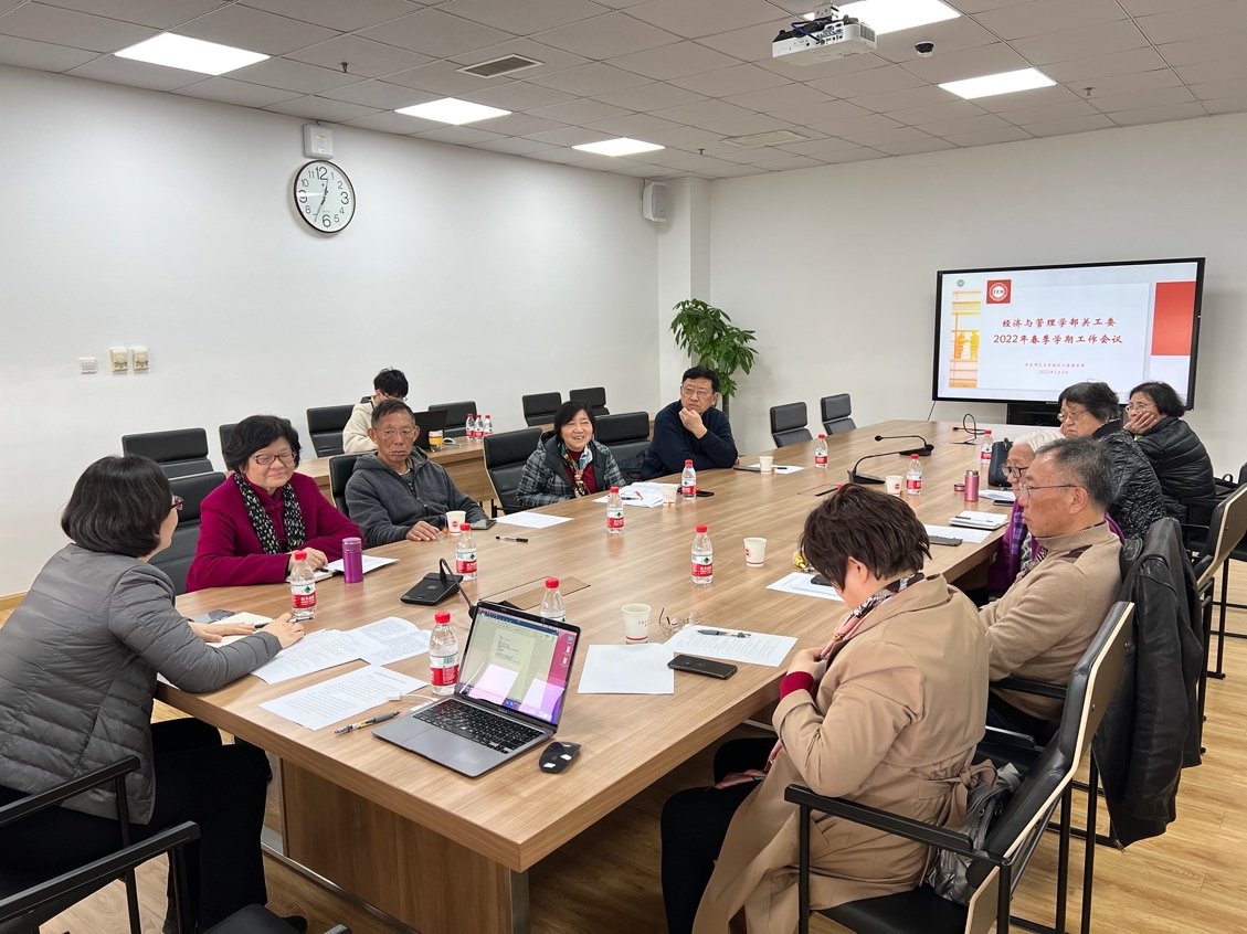 2022年3月3日下午,经济与管理学部关工委在中北校区理科大楼A302召开2022年春季学期工作会议。经济与管理学部(经管书院)党委副书记、经济与管理学部关工委主任张艳虹,经济与管理学部关工委副主任徐丽华、陈爱平、周纪芗,经济与管理学部关工委委员薛跃、陈承明、卞正庆、韩天雄、周洁卿、孙厚琴,经济与管理学部关工委秘书长王旭等出席,会议由张艳虹主持。
