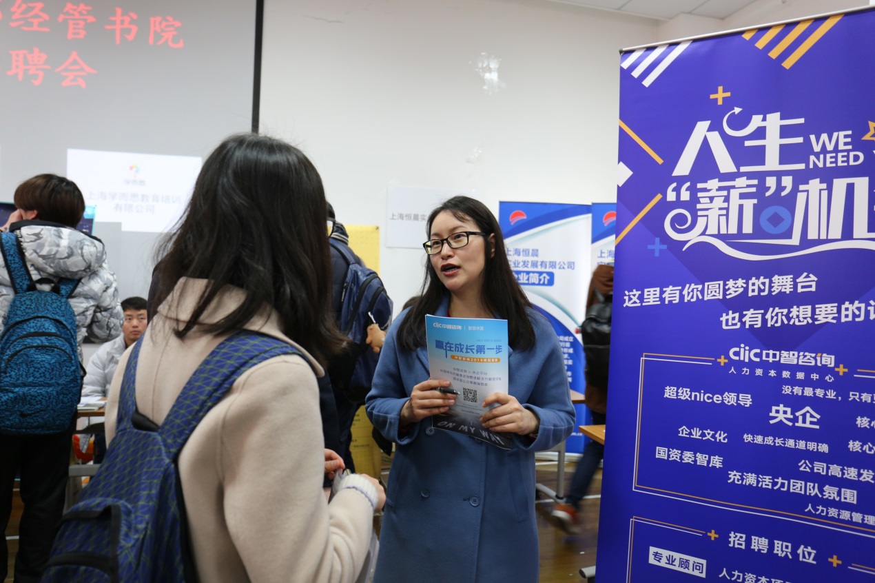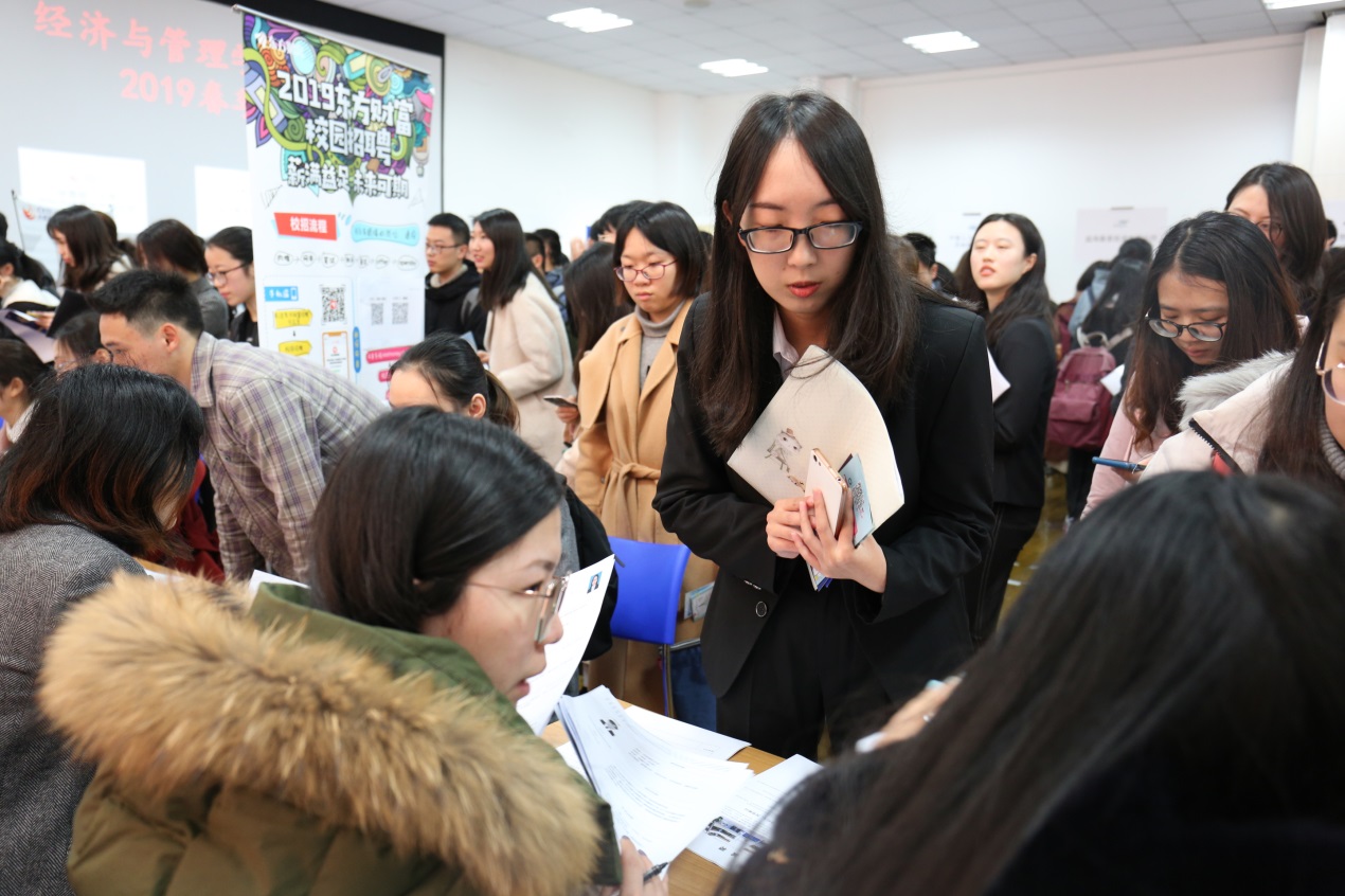2019年3月6日下午,经济与管理学部经管书院2019年春季招聘会在华东师范大学闵行校区学生之家A210多功能厅成功举办。本次春季招聘会共有24家用人单位参加,包括中国移动、中信证券、中智、光大证券等知名国企,普华永道、益海嘉里、欧立恩拓等知名外企,以及中兴通讯、恒大集团等知名上市企业,提供了千余个校招岗位和实习生岗位,涉及经济、金融、保险、管理、财务、中文、数学、软件、外语等各个专业,吸引了来自各个院系、各个年级的近五百余名学生前来参加。