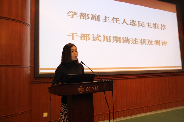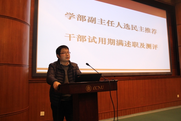 根据组织部的安排,在全体教职工大会上,何佳讯、殷德生、黄曦、董盈盈、金丽君等五位在副处级岗位上试用期满的干部就一年来的工作进行了述职述廉报告,并接受了全体教职工对他们的民主测评。