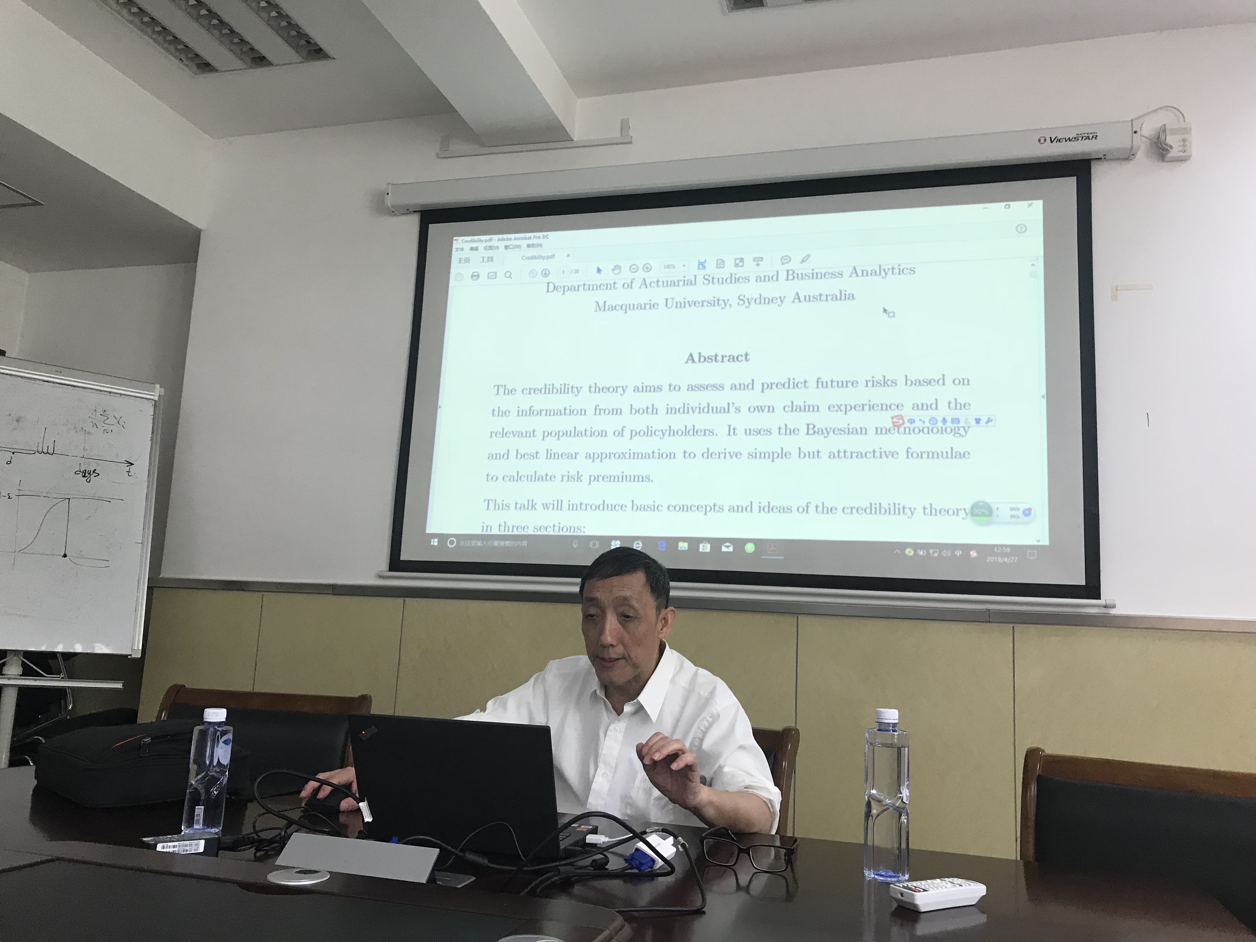 4月27日下午,悉尼麦格理大学的Xian Zhou教授应邀在闵行校区统计楼103会议室为统计学院的师生作学术报告,报告的题目是《Introduction to Credibility Theory》。