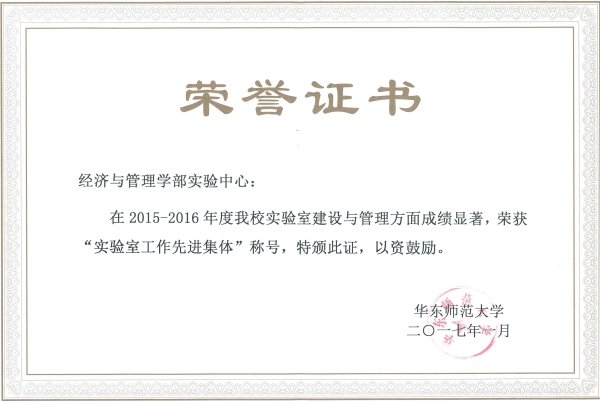 华东师范大学实验室工作先进集体、先进个人评选工作每两年进行一次,我部实验中心(含学部成立前)已连续三次荣膺校实验室工作先进集体(2011-2012年度、2013-2014年度、2015-2016年度)。