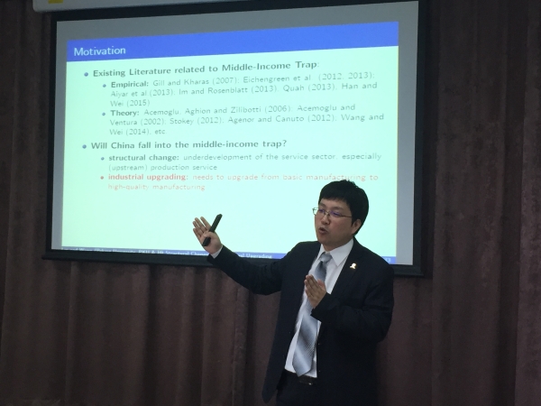 5月3日上午,大夏经管讲坛第六讲在中山北路校区地理馆301会议室开讲。北京大学新结构经济学研究中心副主任、博导王勇做题为“结构转型、产业升级与中等收入陷阱”的报告。报告会由学部学术委员会主任袁志刚主持。