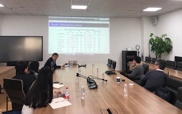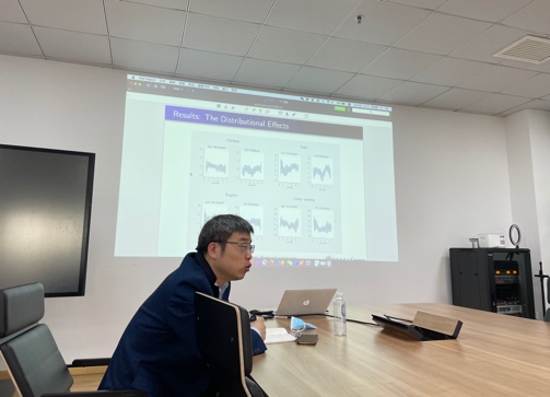 2021年4月13日下午,华东师范大学大宏观科研团队学术讲座系列第五十二期在华东师范大学中北校区理科大楼A302会议室顺利举行。在此次讲座中,西南财经大学经济与管理研究院赵国昌教授介绍了其关于《学习时间越长,学生的成绩会提高吗?来自COVID-19期间高中毕业生在线教育的证据》的最新研究工作和主要成果。经管学部部分教师、博士研究生和硕士研究生参加了本次讲座,讲座由经济学院何超老师主持。