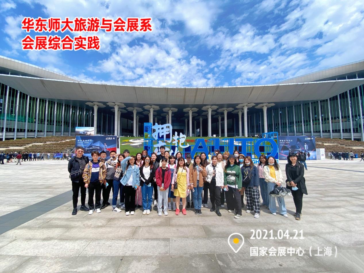 2021年4月21日,旅游与会展系28位同学在党宁、吴杨两位老师的带领下,来到国家会展中心(上海),开展对第十九届上海国际汽车工业展览会的实地考察。本次考察作为《会展场馆与目的地管理》、《商业展览会管理》、《会展场馆资源考察》三门课程的重要组成部分,通过实地考察会展场馆,使学生对会展场馆的规划、建设、运营、管理等方面获得直观的了解,深入贴近行业现实。