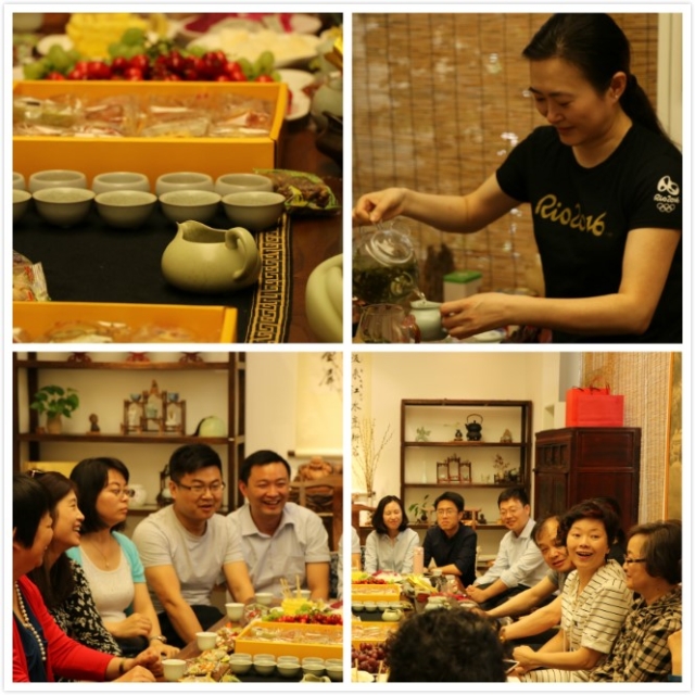 于海芳校友首先为老师们奉上了一场太极养生沙龙,在讲解太极养生的同时还斟了上等的六安瓜片茶,向各位老师娓娓道来品茗与太极之间的意境联系:太极养身讲究静、柔、动相结合,品茶养身同样追求静、雅、品相结合。太极与茶最主要特点表现都是慢与静,太极在慢中找绵柔,茶在慢中蓄能量。因此常习太极会使人养成外柔内刚的品质,练太极拳也是掌控身体,改变气质的过程。老师们听后纷纷颔首认同。
