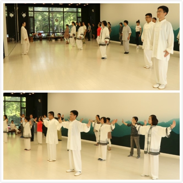 太极体验开始了:从准备热身开始,到太极基本动作分解演示,老师们一个个认真地学习,没过多久,老师们的动作就有板有眼了。看似简单的动作但要规规矩矩的做好真是不容易,需要不断的去练习才能日臻完美,不断超越自己。