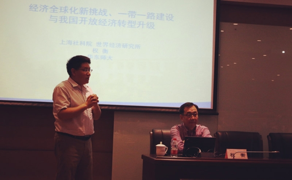 2017年6月14日,上海社会科学院世界经济研究所所长、研究员、博士生导师权衡教授应邀到我院作题为“经济全球化新挑战、一带一路建设与我国开放经济转型升级”的学术报告。华东师范大学经管学部师生参与报告,报告由经济学院院长、中国金融研究院执行院长殷德生教授主持。