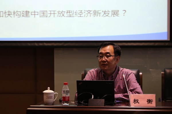 接着,权衡教授讲述了中国一带一路战略建设的重要意义和主要挑战,并将一带一路战略置于中国开放经济转型升级的大背景之下,强调发挥其提升中国经济、贸易、金融地位的重要作用。一带一路战略不仅利于人民币国际化新进程,促进东中西开放联动发展,也有助于推动亚洲经济一体化、欧亚大陆一体化发展,为中国参与全球经济治理提供坚实支撑。作为一个“大倡议”,一带一路具有重构世界经济增长新格局、影响世界经济新发展的重要使命,但其在认识、理念、制度、体制、机制等方面仍需进一步明晰和完善,需要着手解决实施中的政策协调和沟通问题。此外,权衡教授还提到了中国沿海城市和内陆城市协同开放问题,认为对外开放新格局的本质内涵就是实现市场化和法制化。做到了这两点,全球化就是水到渠成。