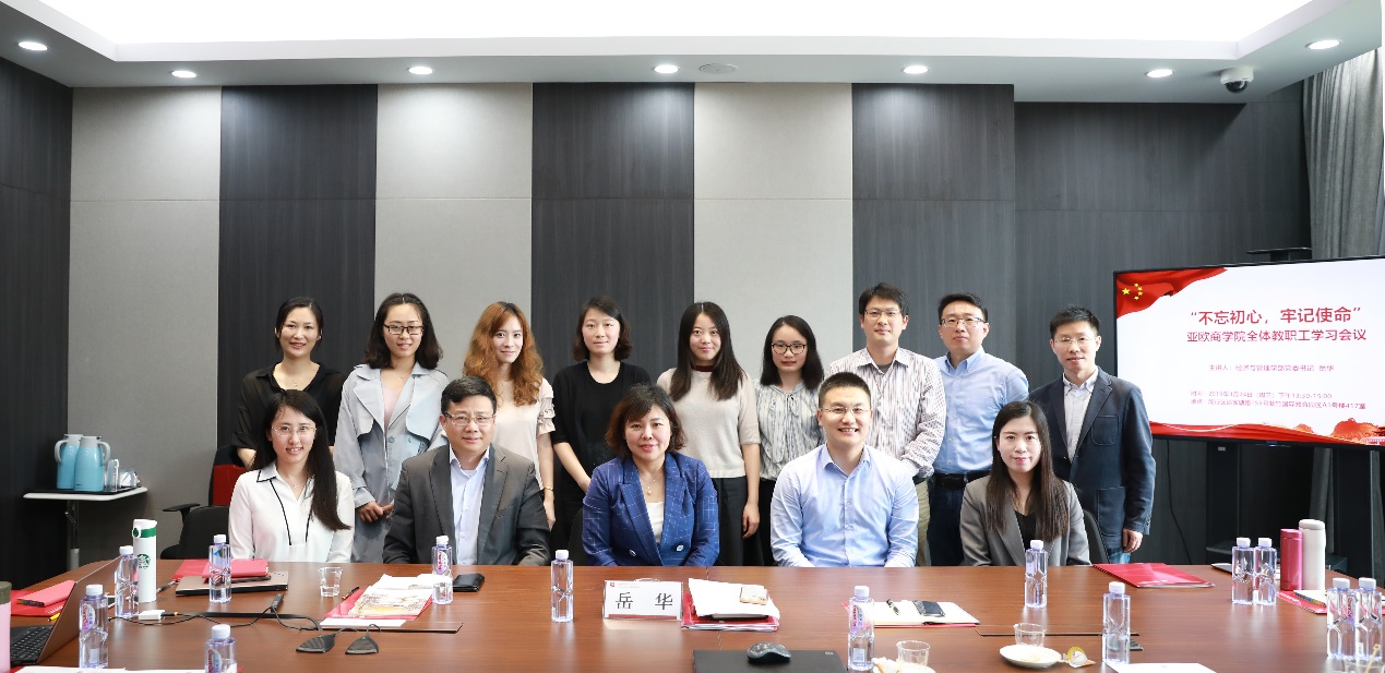 2019年4月24日下午,亚欧商学院师生联合党支部邀请经济与管理学部党委书记岳华教授为学院全体教职工开展题为“在学思践悟中牢记初心使命,在奋斗中成就出彩人生”的主题党课暨工作学习会议。亚欧商学院项目主任、专任教师和行政管理人员参加会议。会议由经济与管理学部党委委员、学部副主任、亚欧商学院中方院长何佳讯教授主持。
