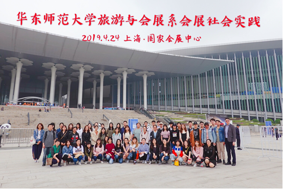 2019年4月24日,旅游与会展系在国家会展中心(上海)举办会展专业社会实践活动。2016、2017级全体本科生、2018级旅游管理专业博士、硕士研究生,在党宁、吴杨、孙晓东三位老师带领下,对国家会展中心进行了场馆资源考察,并观摩了在此举办的第十八届上海国际汽车工业博览会。