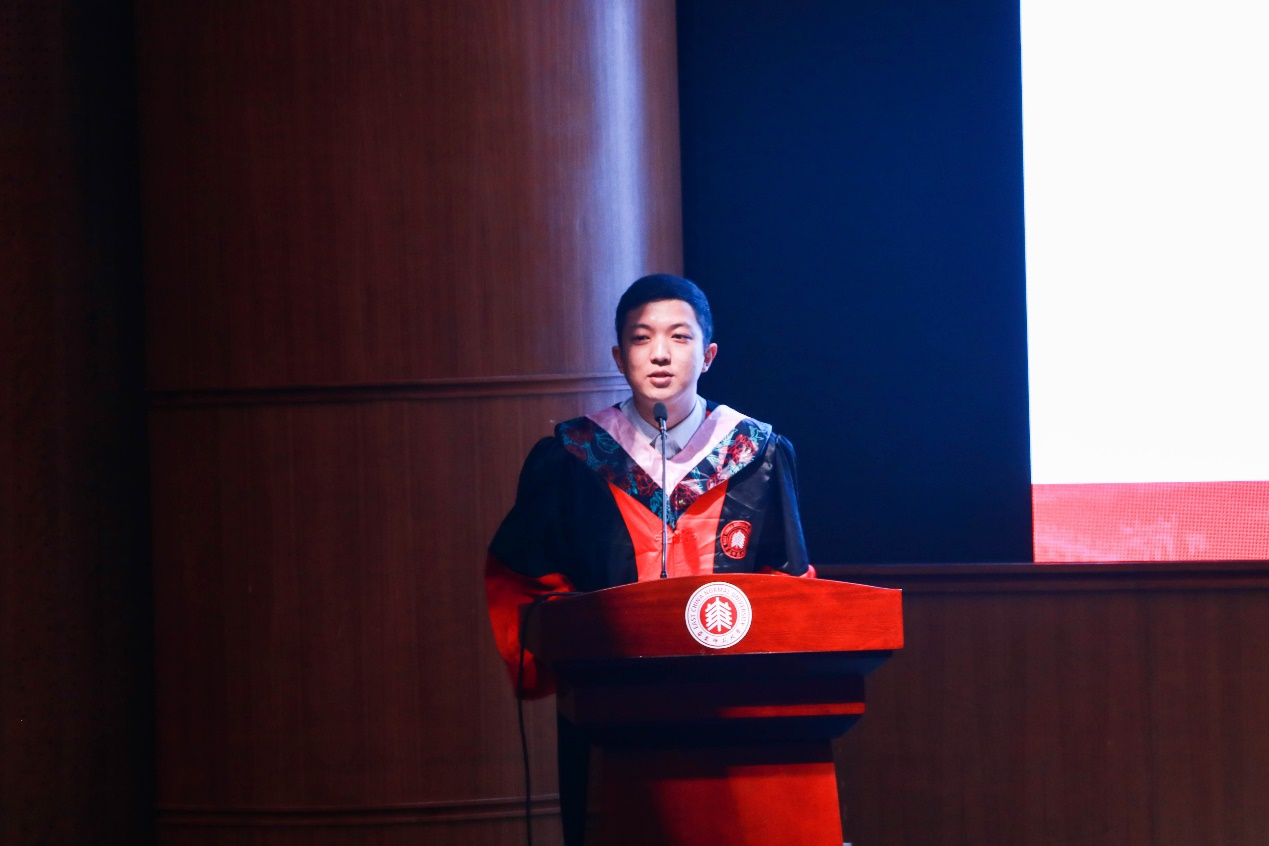 2014级社会保障博士研究生毕业代表侯冰讲述自己的“四年故事”,初入学时被老师们“吓唬在公管院读书很难”后的不以为然,到逐渐认识到博士学习的“难”,他在一步一步成长,最终认清自己,奋力向前。他提到要“感谢华师大,感谢公管院老师们”,同时倡议毕业生们在毕业之际再次感受一下公管院的美、华师大的爱。