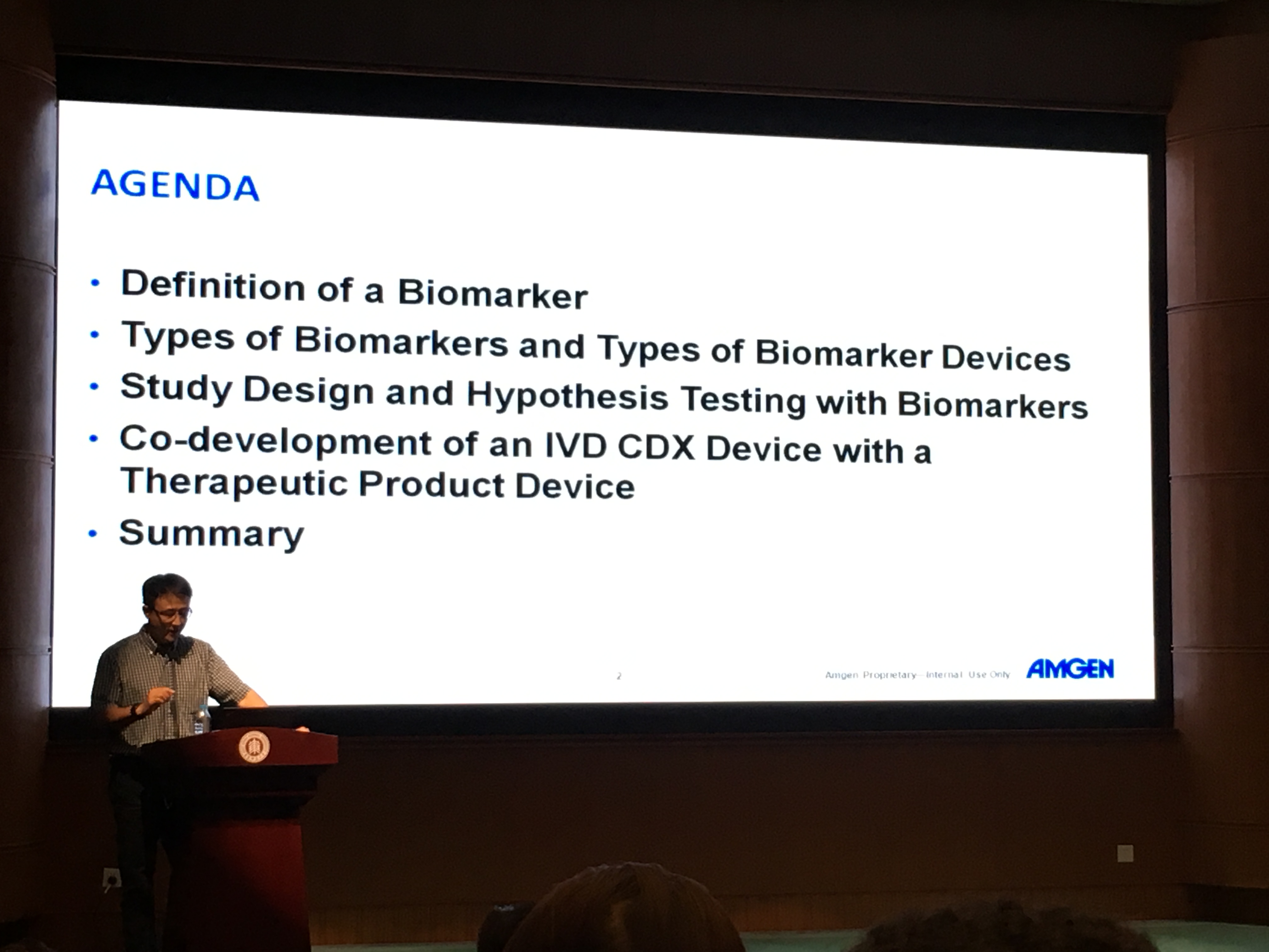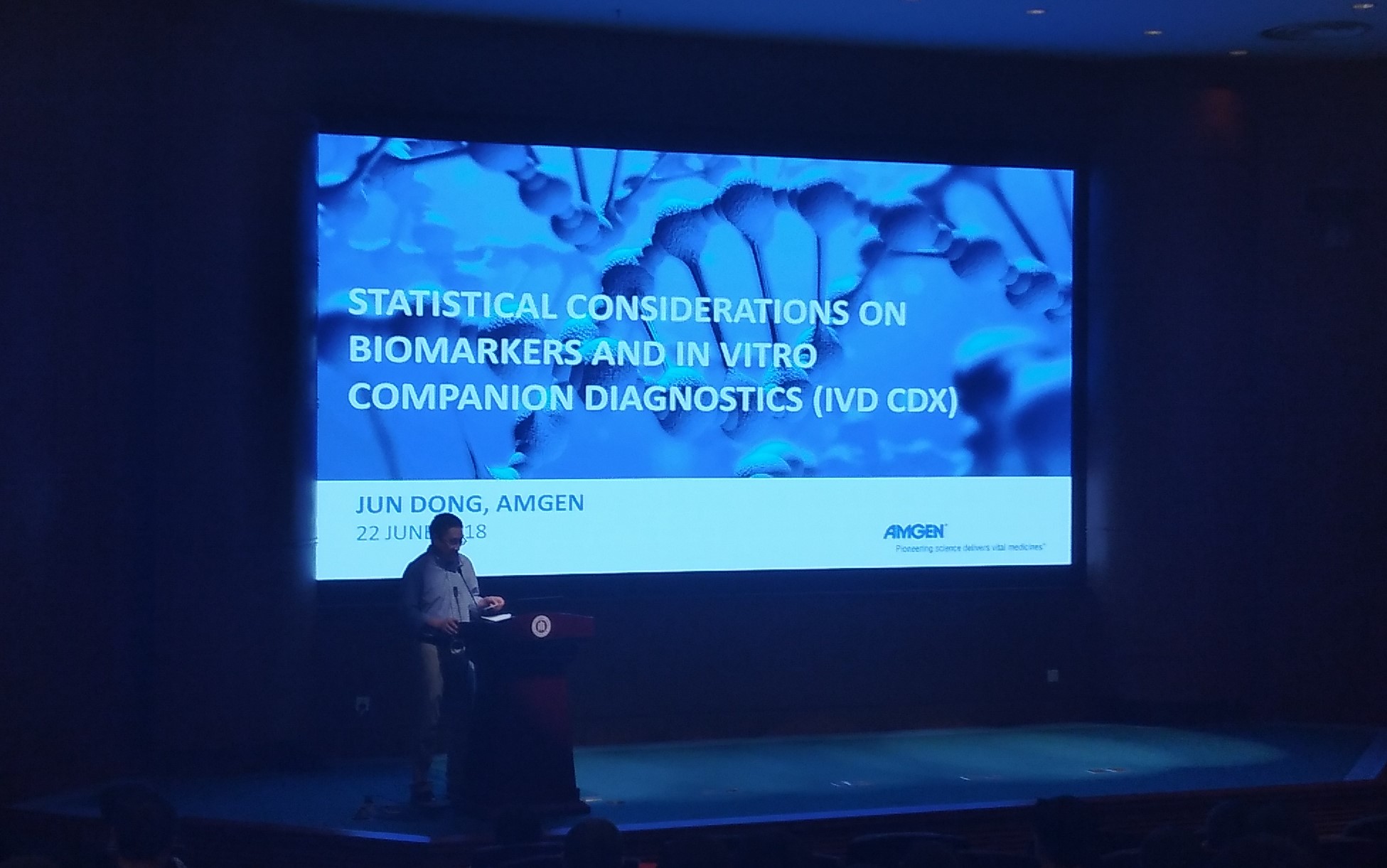 安进亚洲生物医学数据科学主管Jun Dong博士作主题为“Statistical considerations on biomarkers and in vitro companion diagnostics”的报告。
