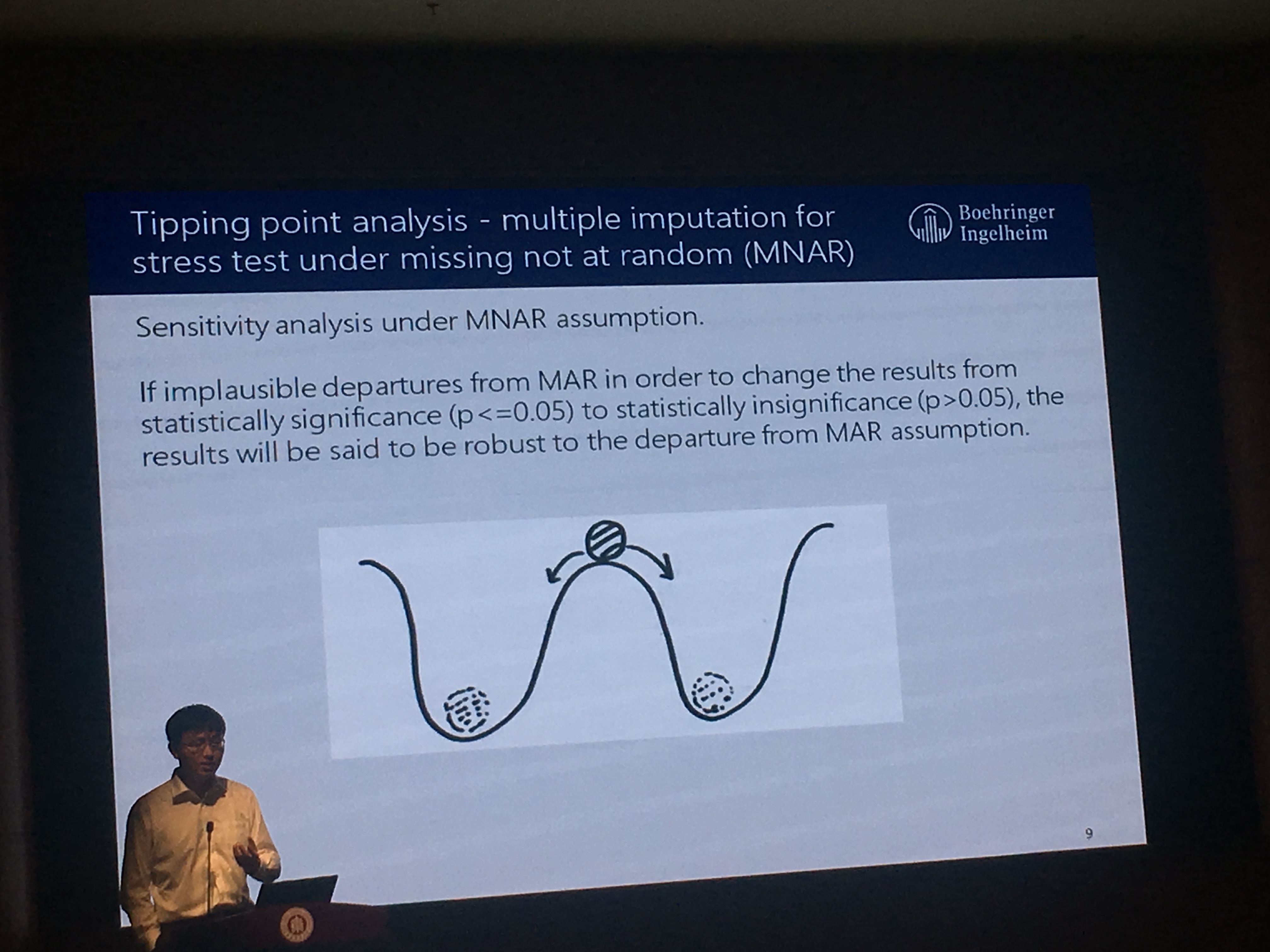 勃林格殷格翰高级统计科学家Harry Hua博士作主题为“Tipping point analysis for multiple imputation under MNAR”的报告。
