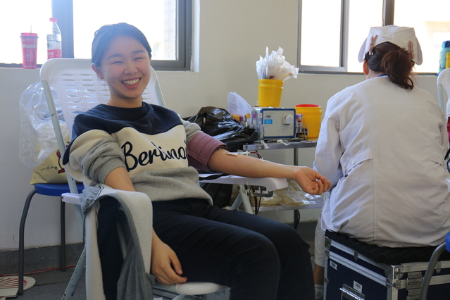 在献血现场,同学们听从医务人员安排有序进行初检、登记、体检、采血等步骤,一袋袋殷红的献血饱含爱心。大家显得格外热情洋溢,有的一大早赶在校医院开门前就在入口处等待,有的拎着笔记本电脑、书包赶来,准备献完血就回去上课。一位同学还在采血时拿出手机让志愿者帮忙拍照,他满脸得意地说“照片发给妈妈,她说为我骄傲”。