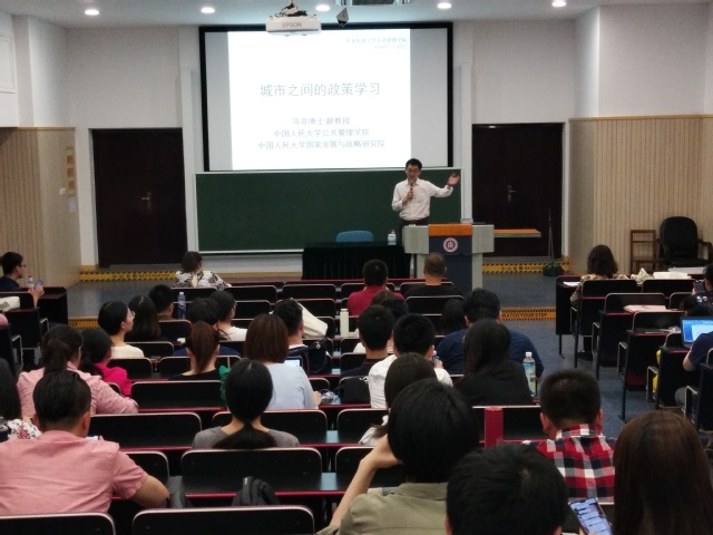 2019年5月25日下午,经济与管理学部公共管理学院在科学会堂一楼阶梯教室举行了以“中国城市之间的政策学习”为题的学术讲座。讲座特别邀请了中国人民大学公共管理学院的马亮副教授作为主讲人,由公共管理学院聂磊副教授主持,MPA的同学们积极参与。