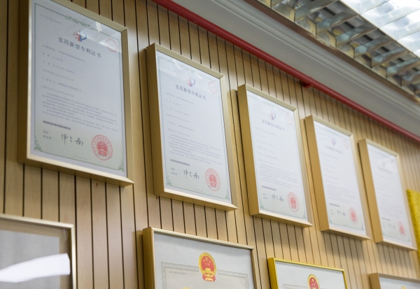 时间临近中午,参访也近尾声。师生一行在彩滨实业的各项专利与获奖证书前合影留念,本次校友企业参访在愉悦的氛围中顺利结束。