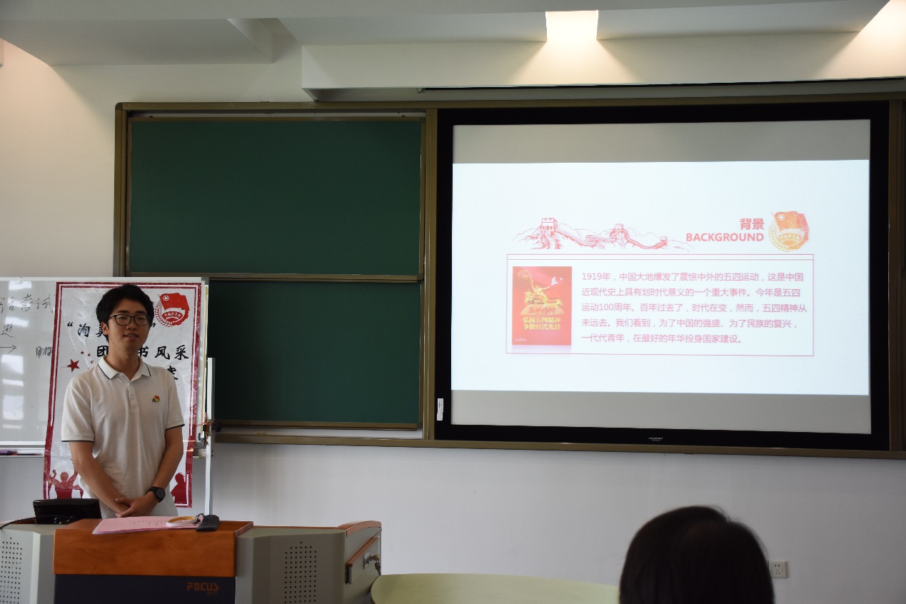 在“微团课”授课环节,各团支部书记围绕“五四运动100周年”主题进行了现场授课。曹恩民发表了“五四精神,传承有我”的主题演讲,就“五四精神”如何更好地传承提出了自己的观点;李超琼进行了主题为“韶光不负,青春不老”的演讲,提出当代青年更应积极奋进,为实现中华民族的伟大复兴贡献力量;李铮驭以“胸有凌云志,勇担新时代”为题,在回顾五四运动一百周年历史的同时,提出了当代青年所应承担的历史使命。
