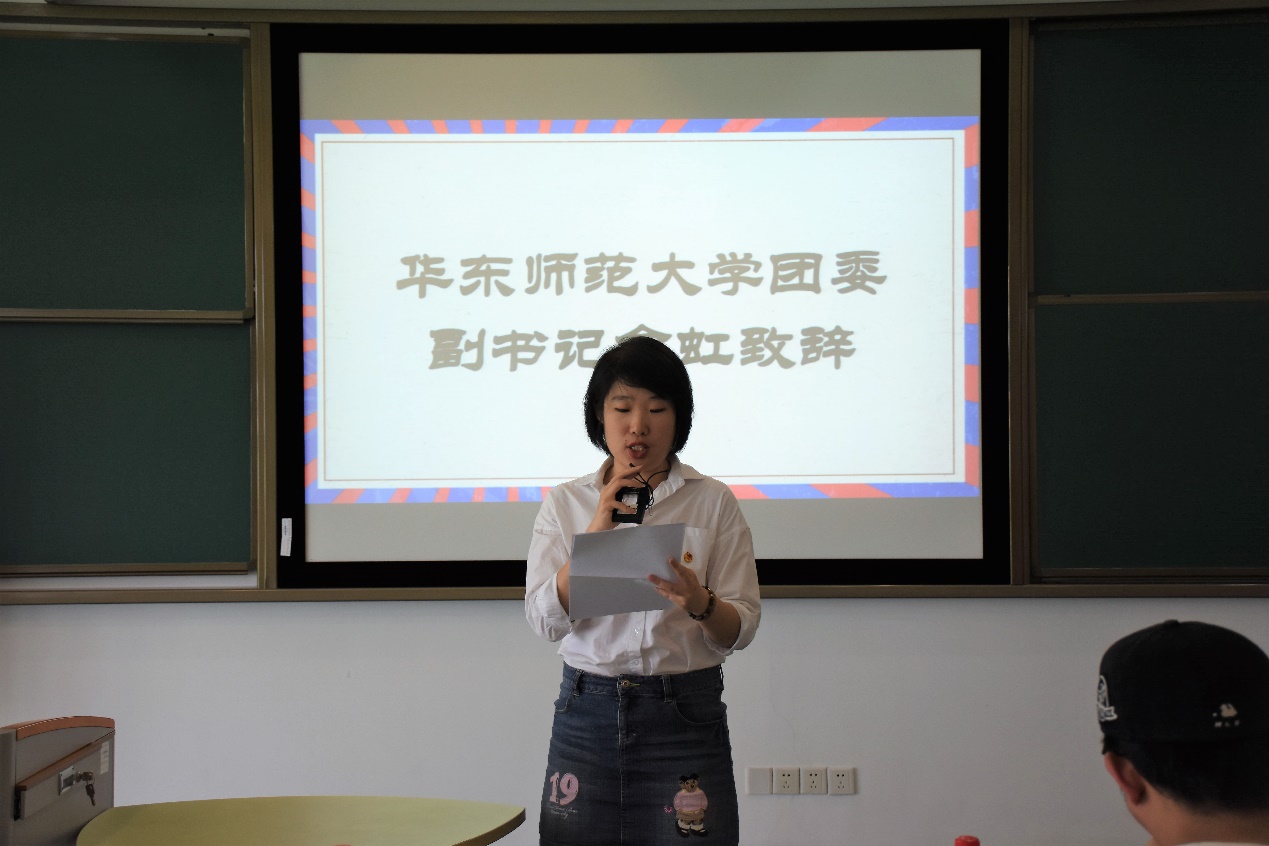 在齐唱团歌、播放团员采访视频后,俞虹首先致辞,她结合习总书记在纪念五四运动100周年大会的讲话,指出广大团员青年更应该树立远大理想、热爱伟大祖国、担当时代责任、勇于砥砺奋斗、练就过硬本领、锤炼品德修为。基层团支部是引领团员青年的核心组织,而团支部书记更是基层团支部建设的中坚力量。如何做好新时代的基层团支部工作,团支部书记不仅要注重自身能力和素养的提升,更应该结合团员青年需求制定团日活动计划,最大限度调动团员青年活力,展现青年学子风采。