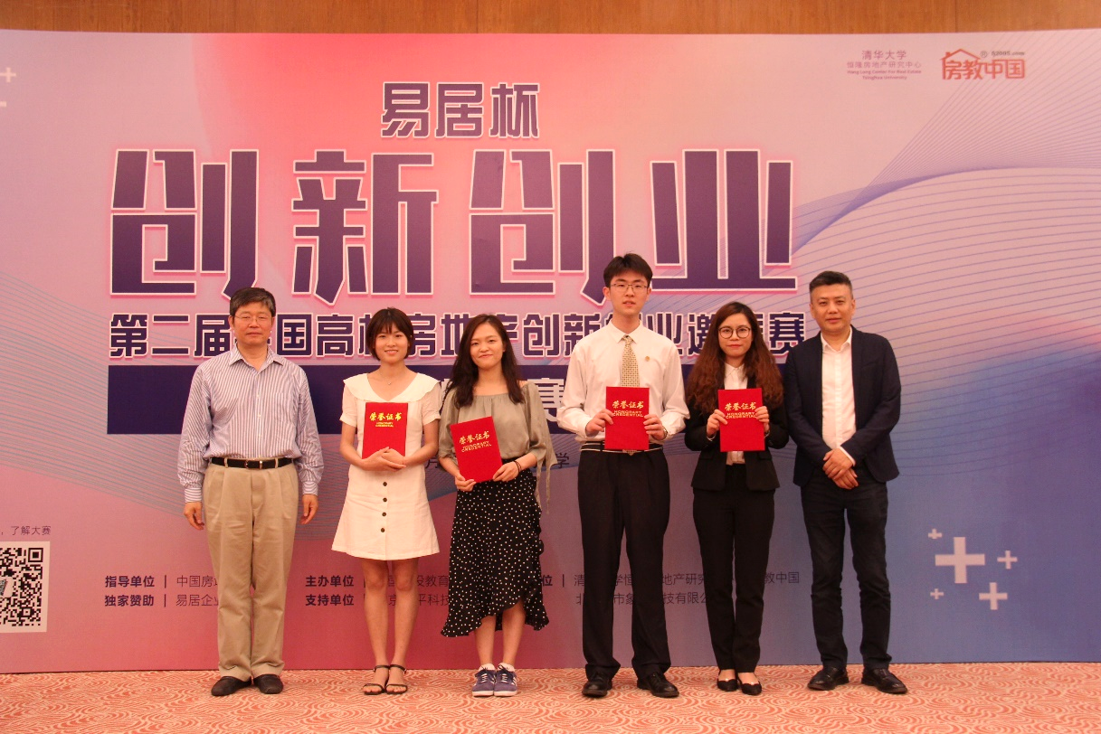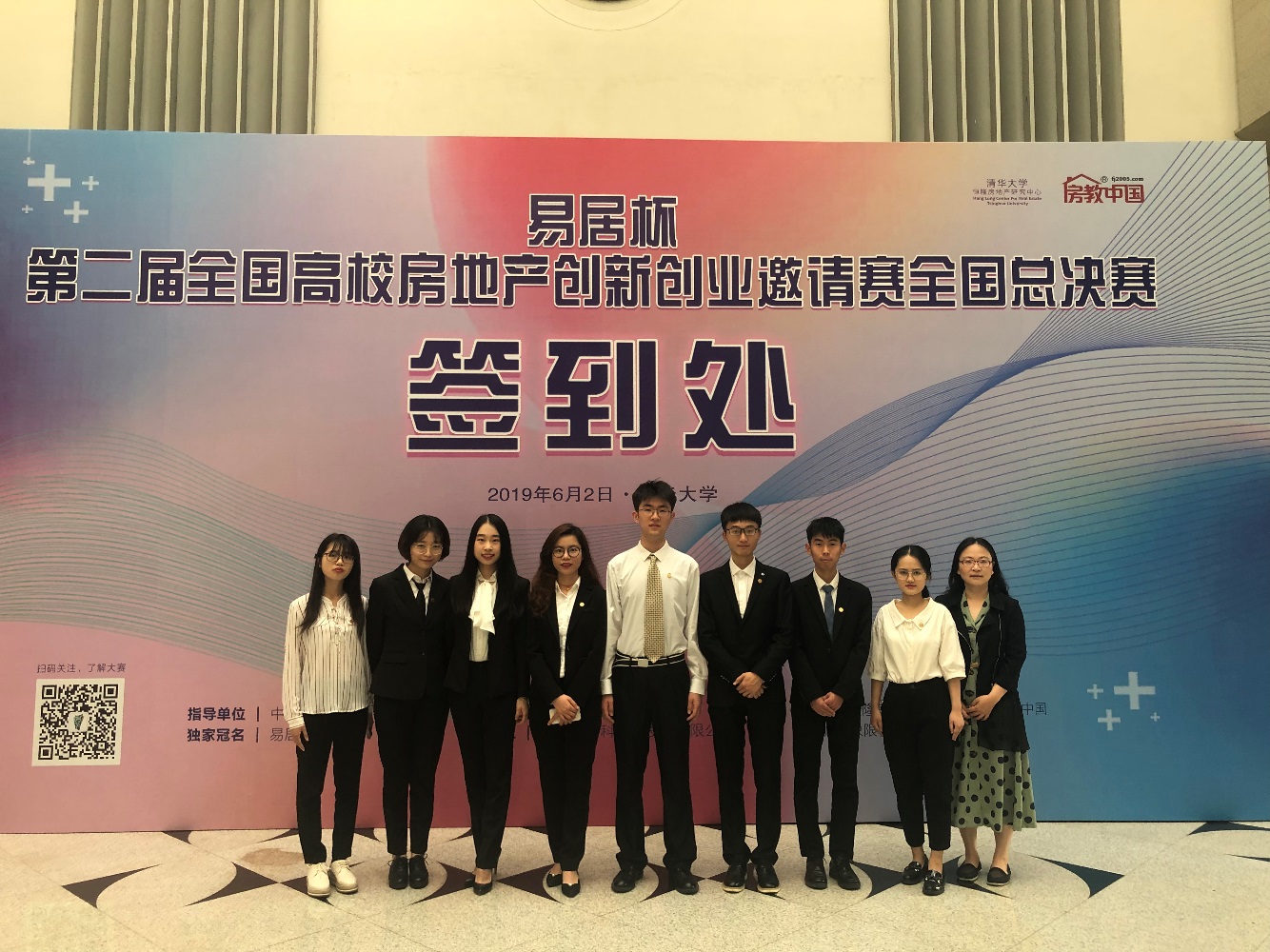 2019年6月1日,易居杯第二届全国高校房地产创新创业邀请赛全国总决赛在清华大学中央主楼顺利举行。来自清华大学、北京大学、中国人民大学、中央财经大学、哈尔滨工业大学、东北财经大学、华东师范大学、上海交通大学、同济大学、浙江大学、华中师范大学等16所高校代表队根据抽签顺序逐一展示,最终我校代表队凭借“龙腾苑社区改造创业项目”,得到了在场评委与师生的一致肯定,与北京大学代表队并列获得创业最高奖项:“创业金钥匙奖”。