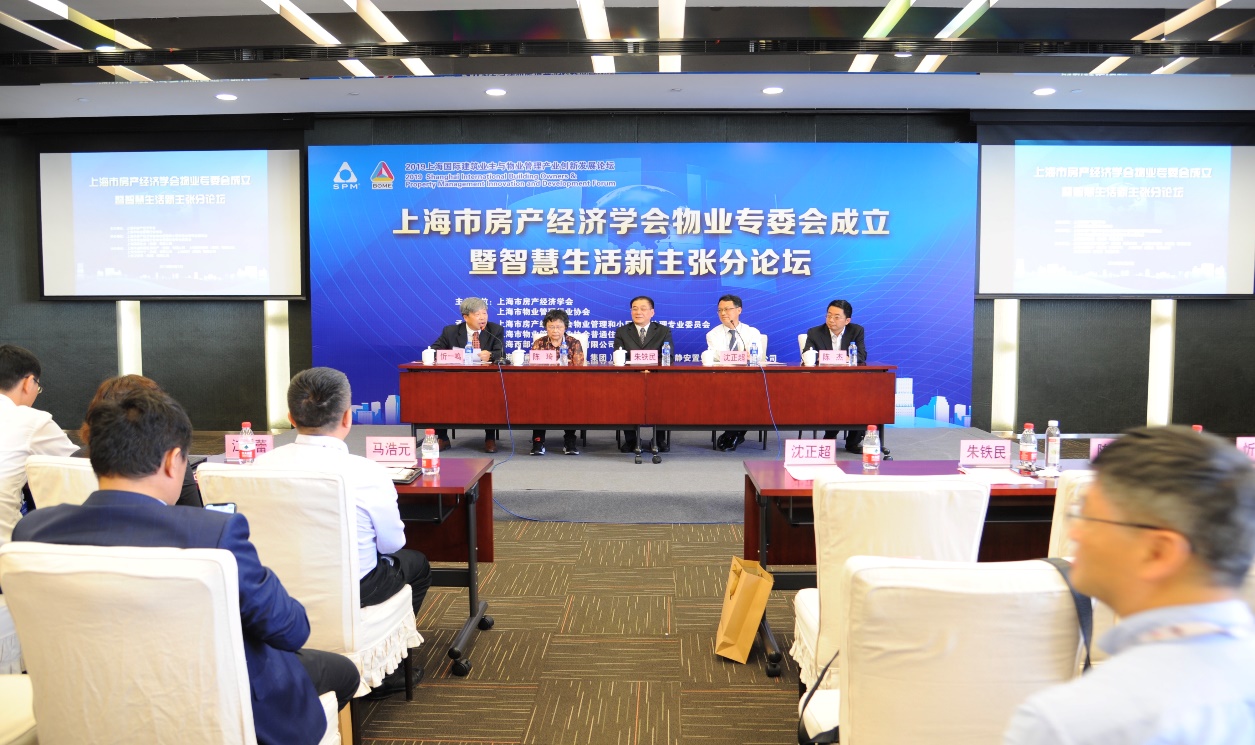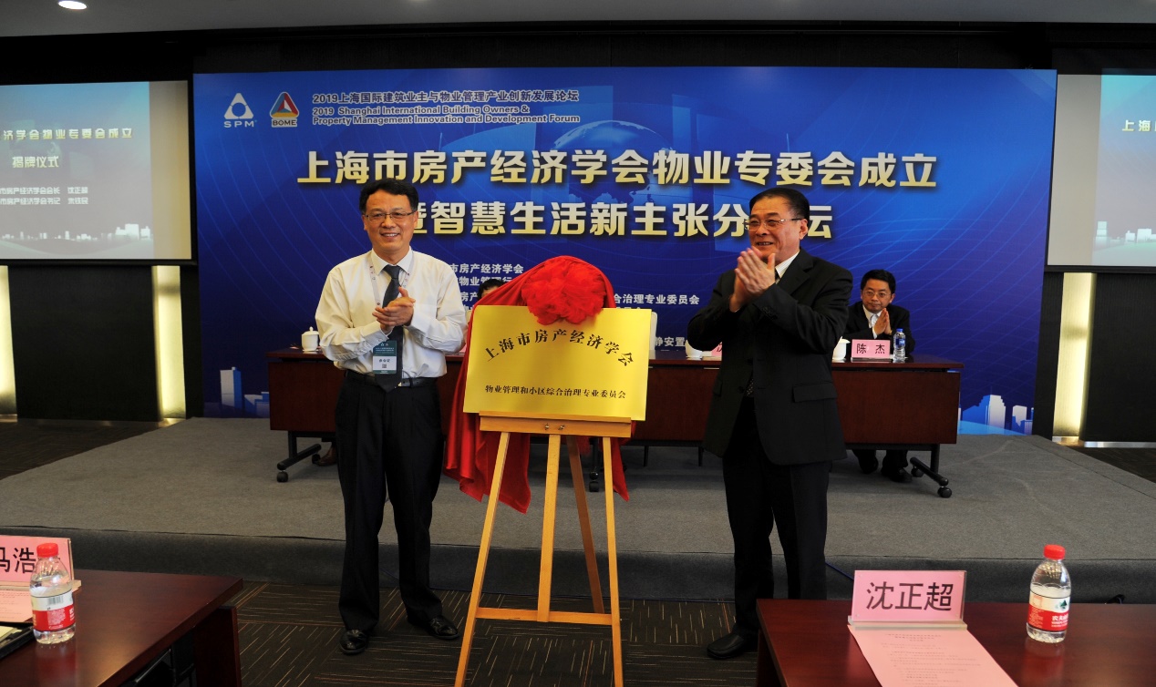 6月5日下午,上海市房产经济学会物业管理和小区综合治理专业委员会成立暨智慧生活新主张分论坛在上海世博中心举行。上海市房产经济学会领导、上海市物业管理行业协会、有关企业代表200余人参 加了本次会议。会议由市学会副会长兼秘书长忻一鸣主持,陈琦副会长宣读成立物业管理专委会的批复,市学会沈正超会长、朱铁民书记为专委会揭牌。