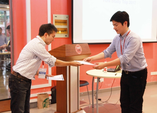 进入最激动人心的授证仪式环节,Thornton教授为各位访学学员颁发项目证书,并送上祝贺寄语。最后,中心还为本次访学学员们悉心准备了留言薄,以此记录学员们对来沪之行的感受与收获。至此,专业学位教育中心接待日本横滨国立大学来沪访学的工作圆满落幕。虽隔重洋,情谊长存。